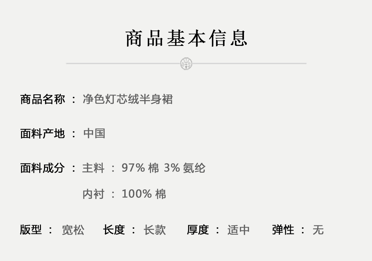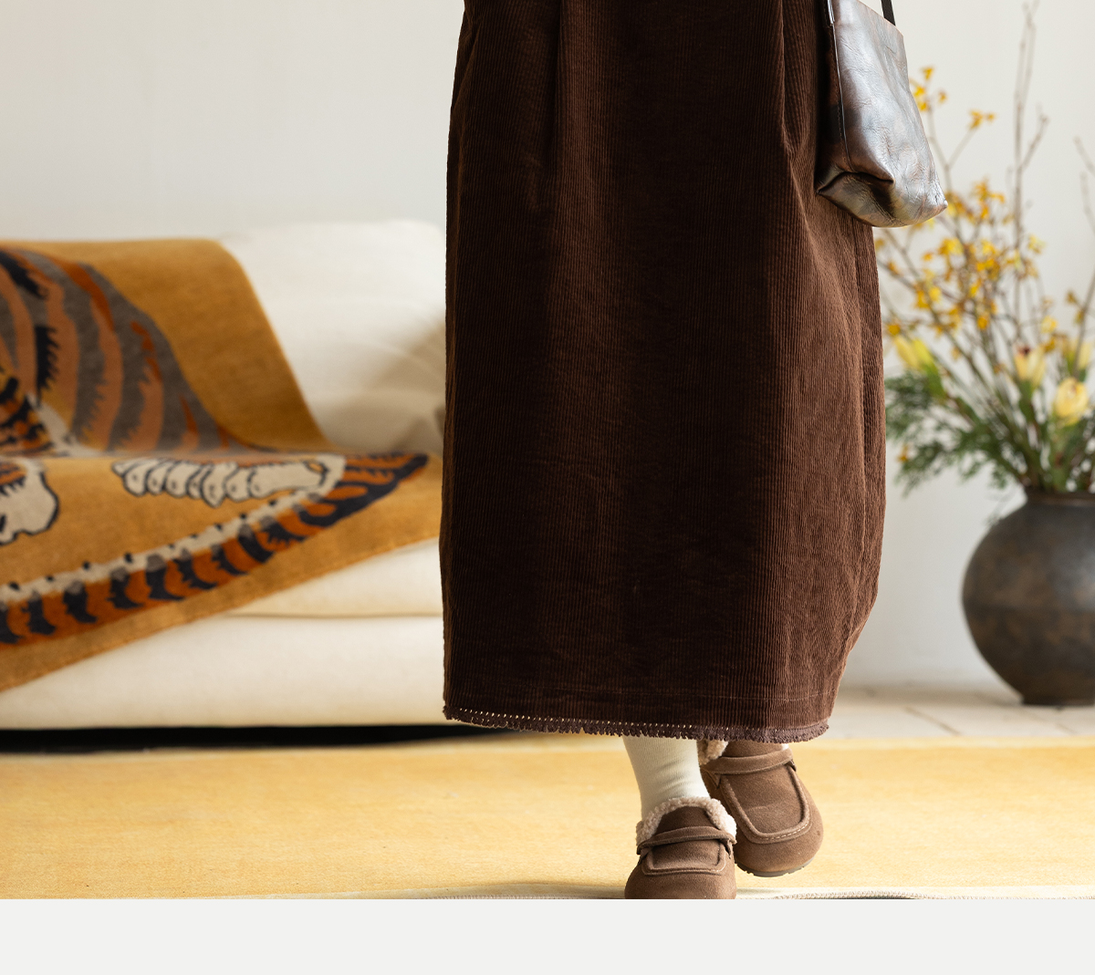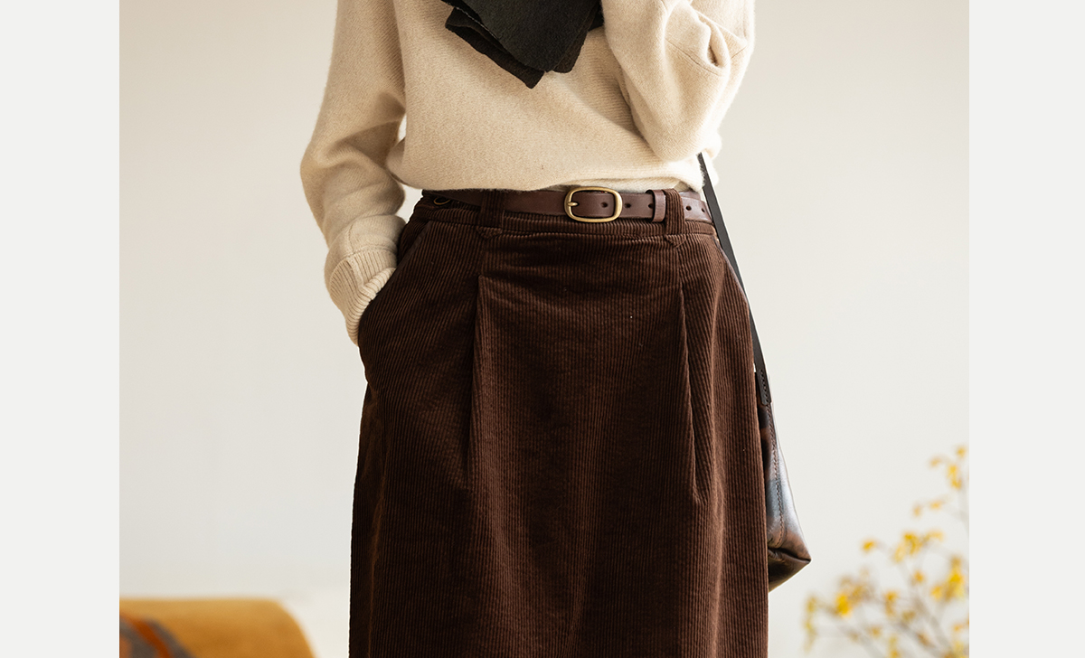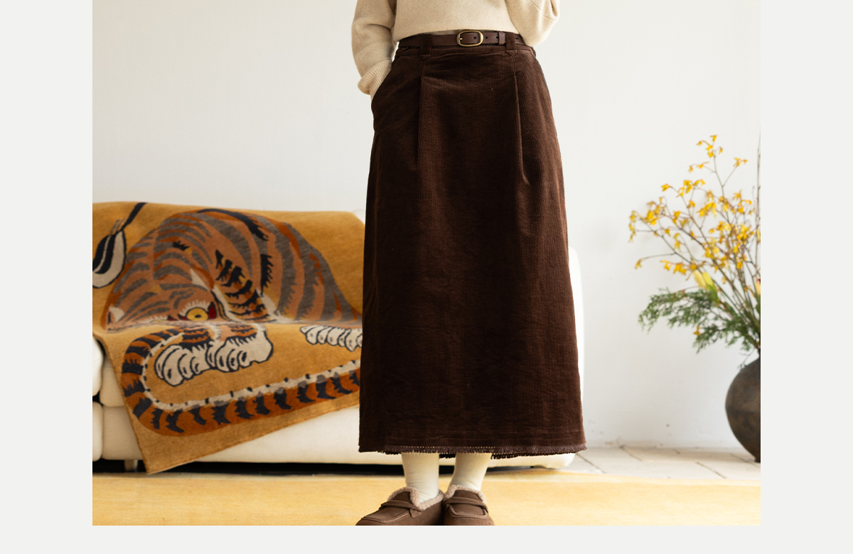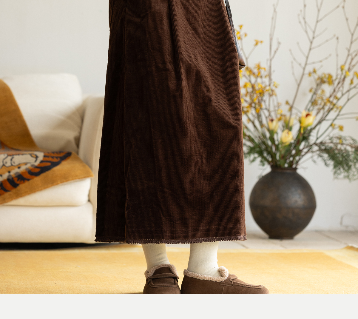 牧衣游原创 净色灯芯绒半身裙新款文艺复古简约百搭直筒半裙 汀之