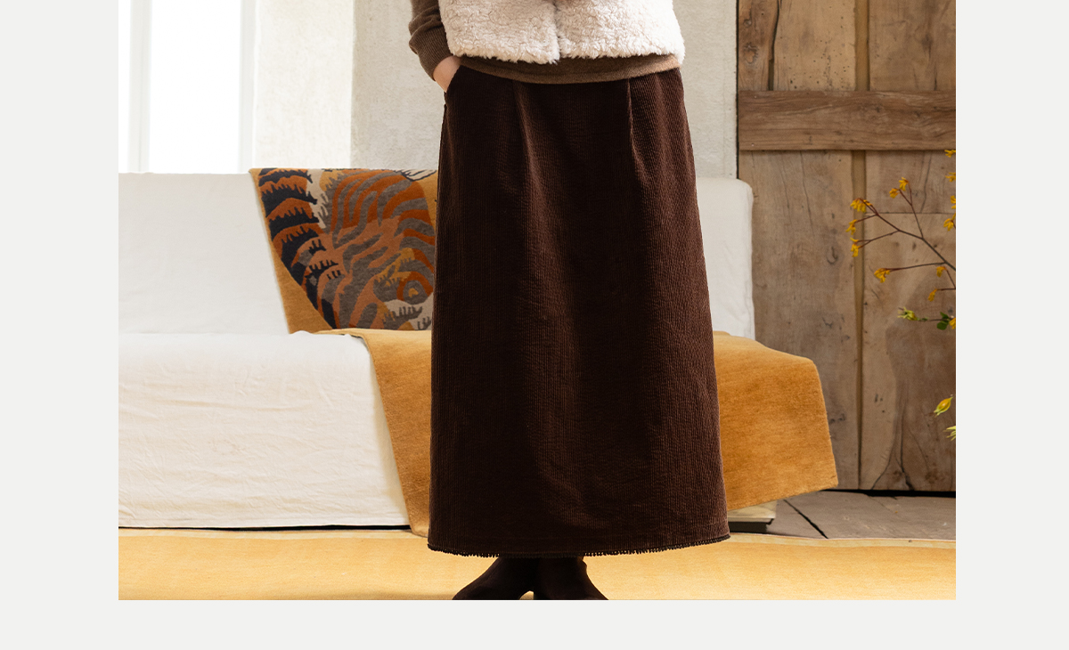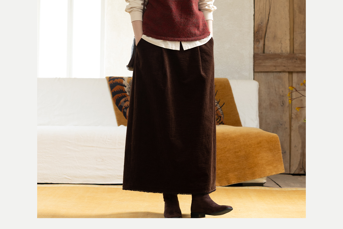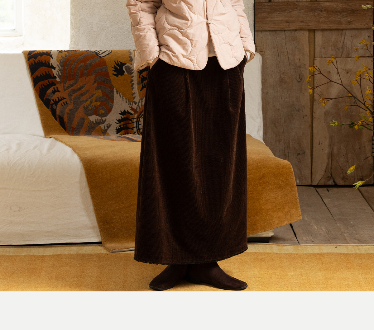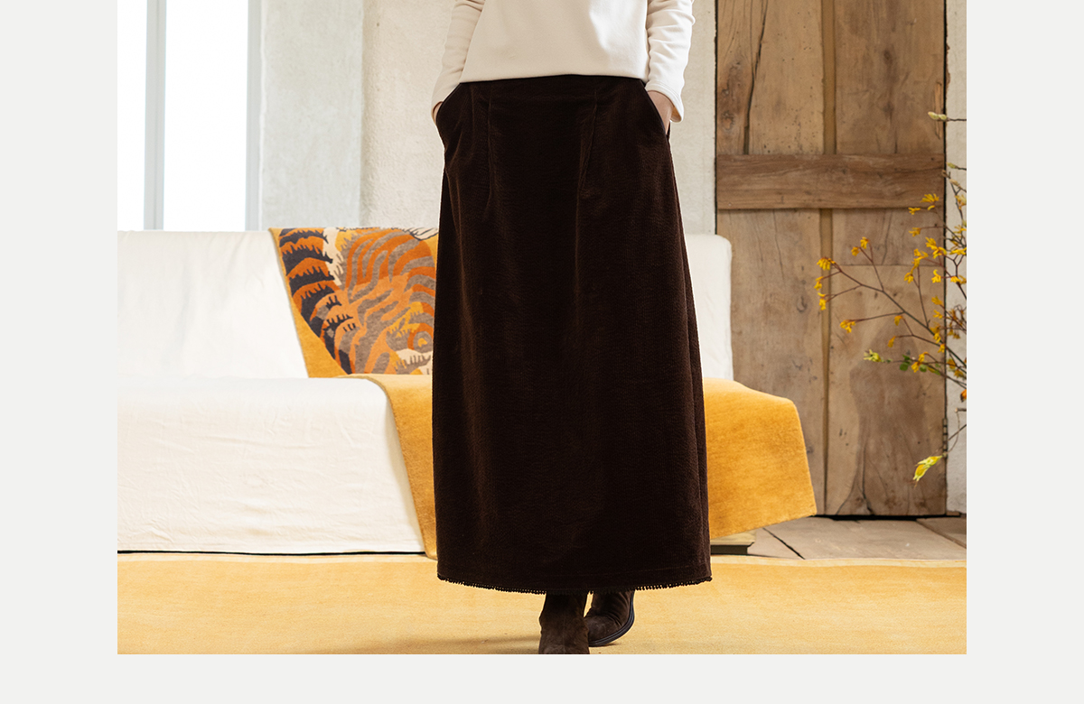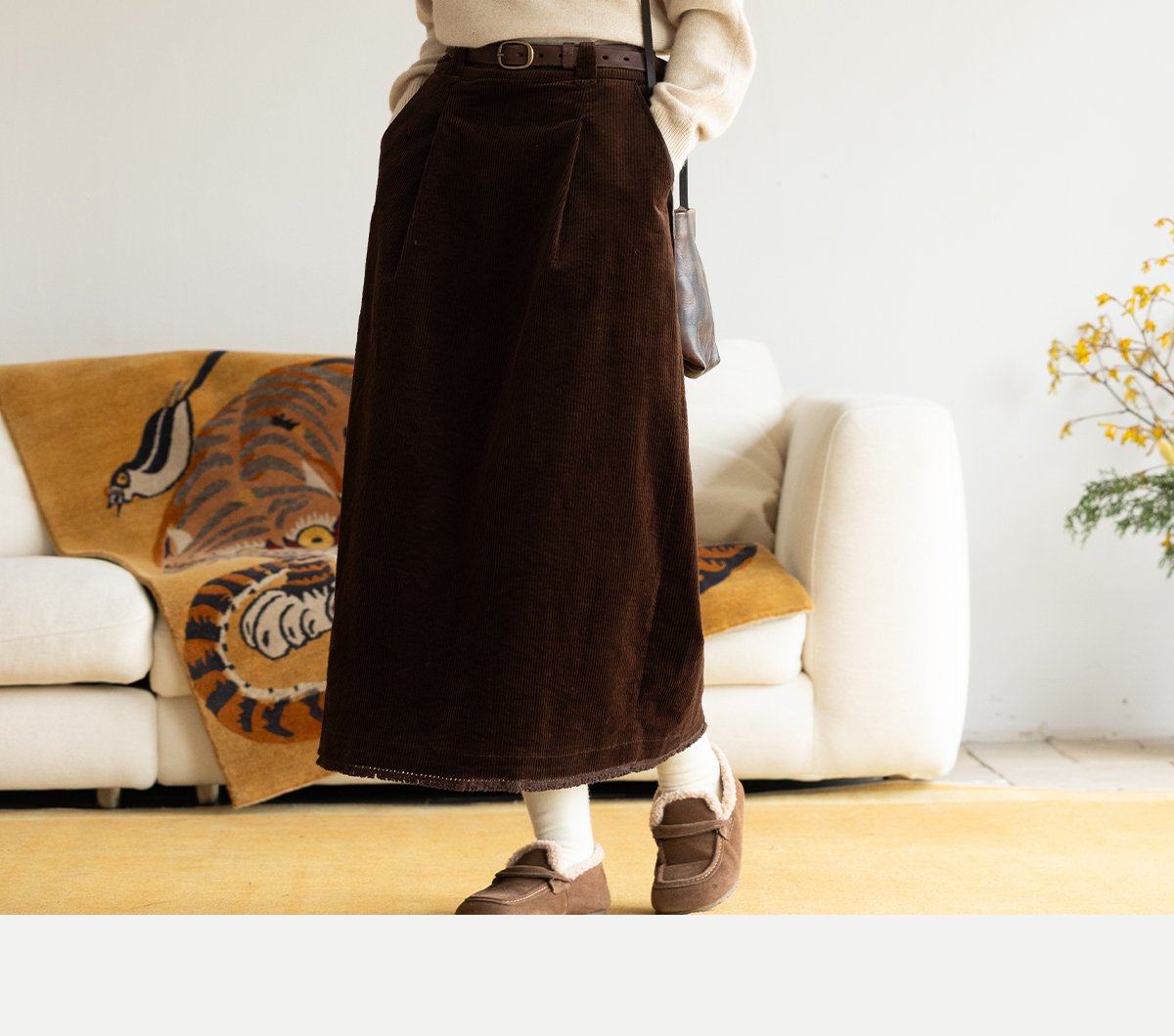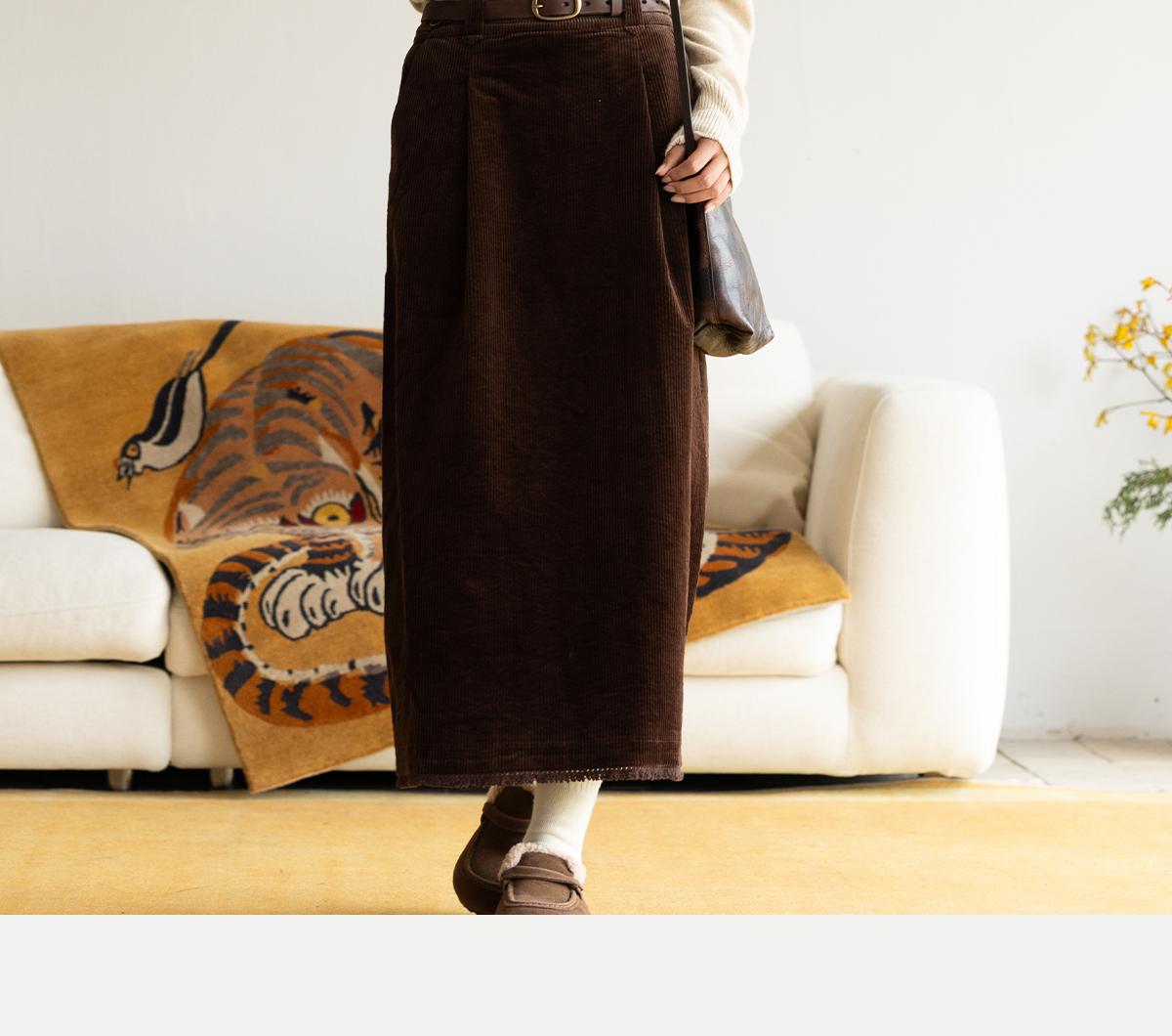 牧衣游原创 净色灯芯绒半身裙新款文艺复古简约百搭直筒半裙 汀之