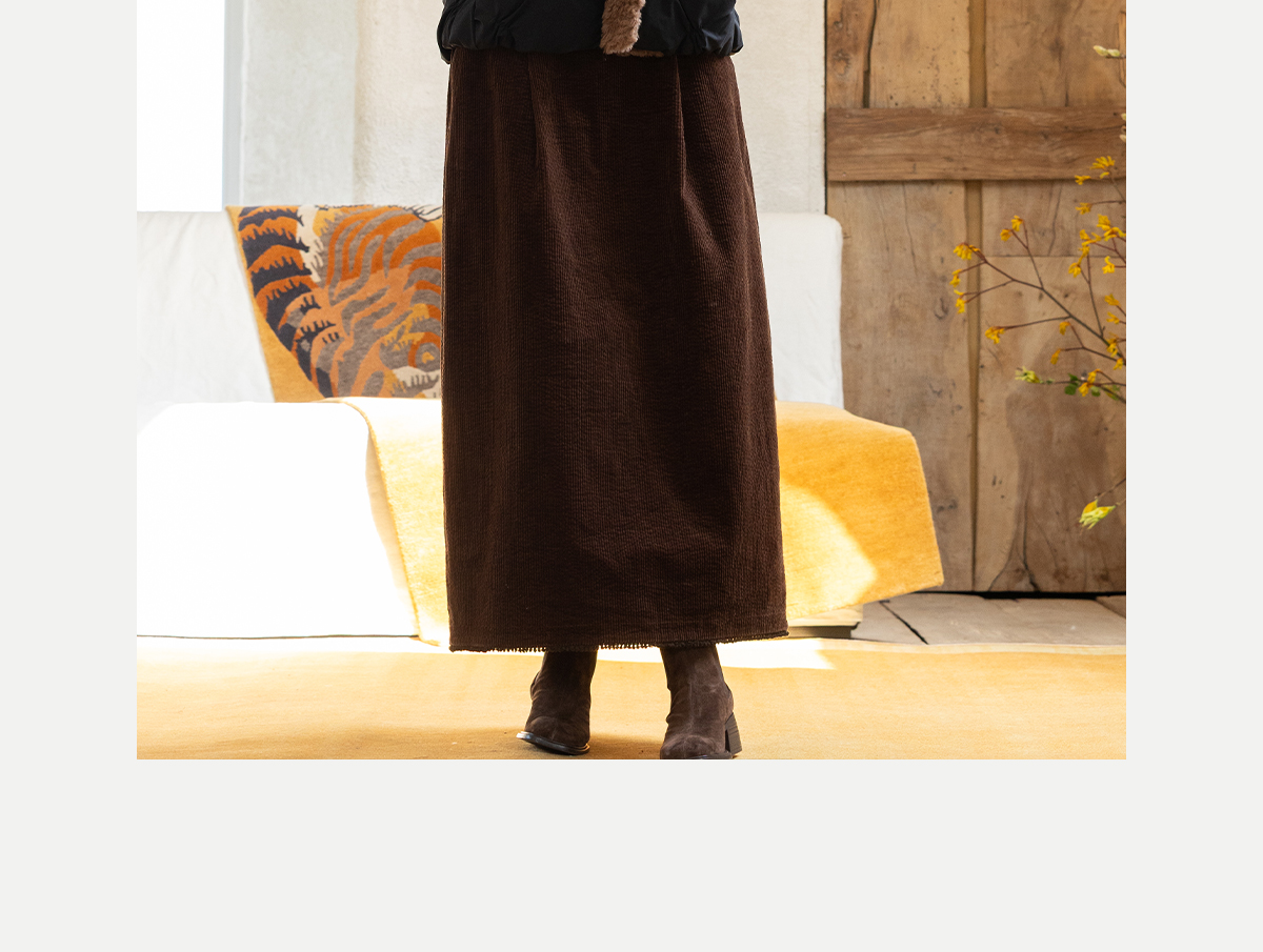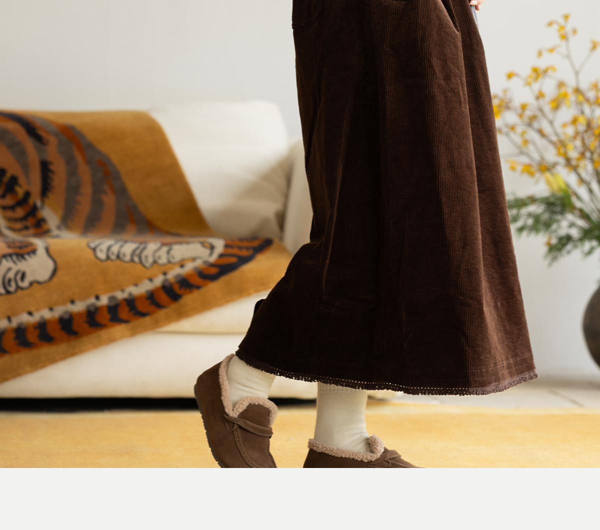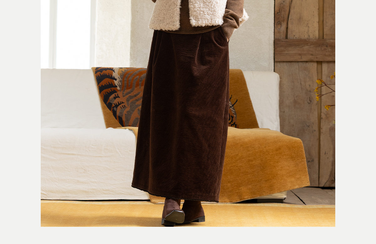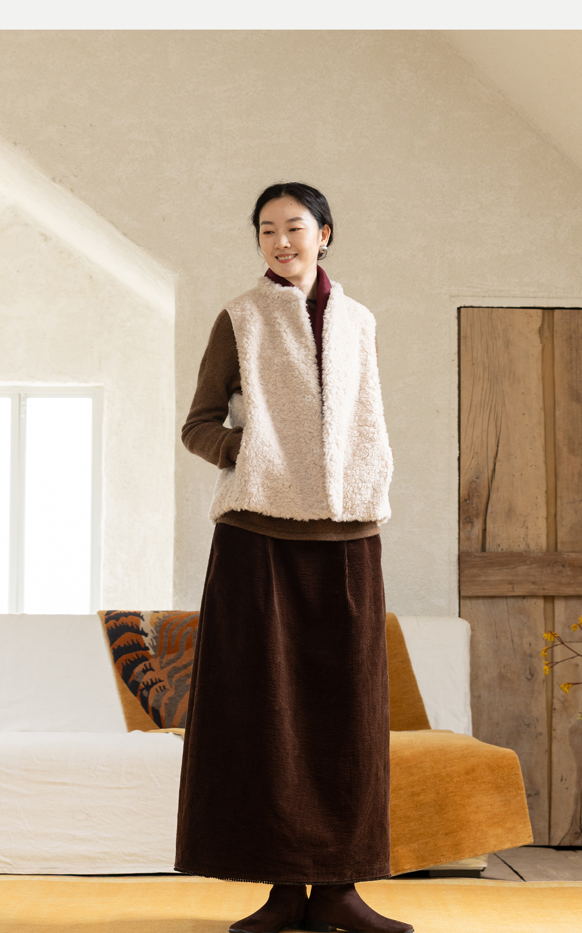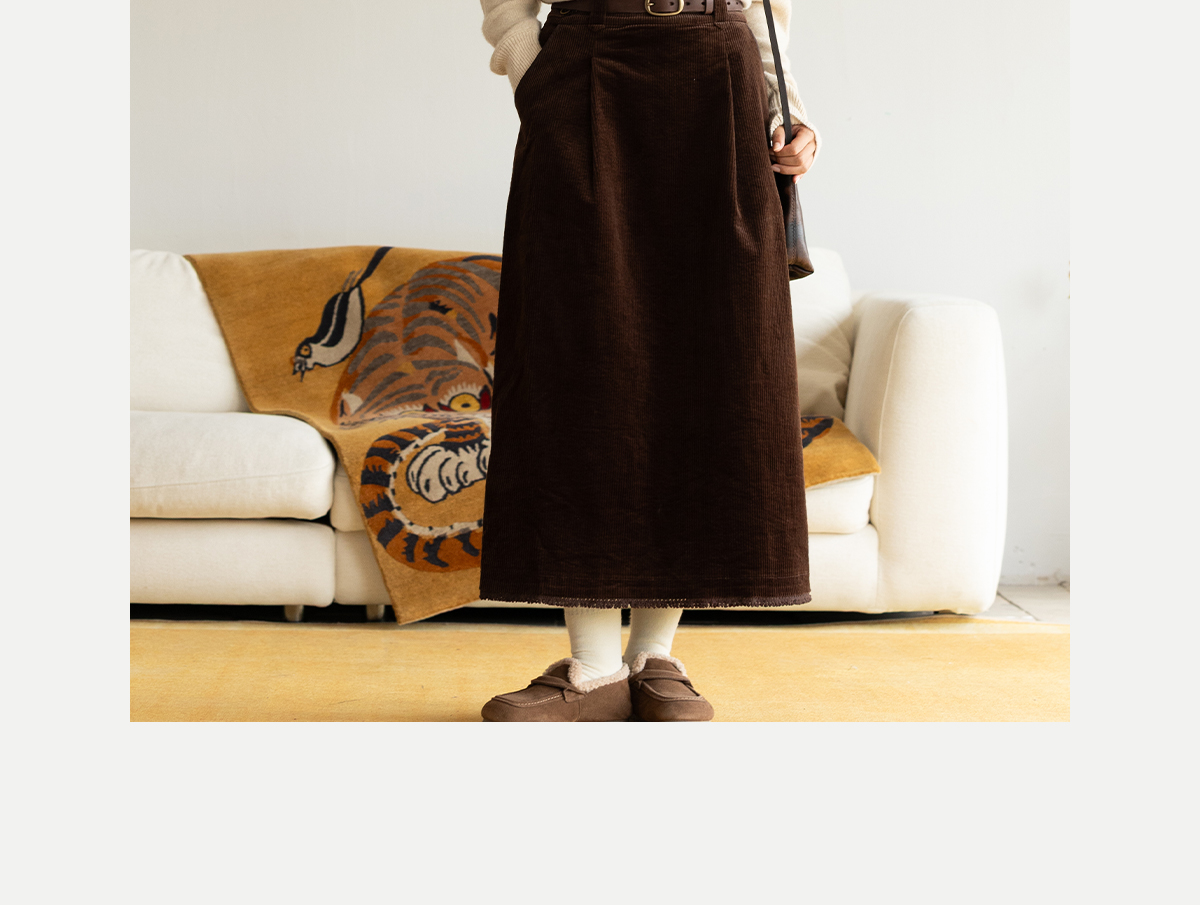 牧衣游原创 净色灯芯绒半身裙新款文艺复古简约百搭直筒半裙 汀之