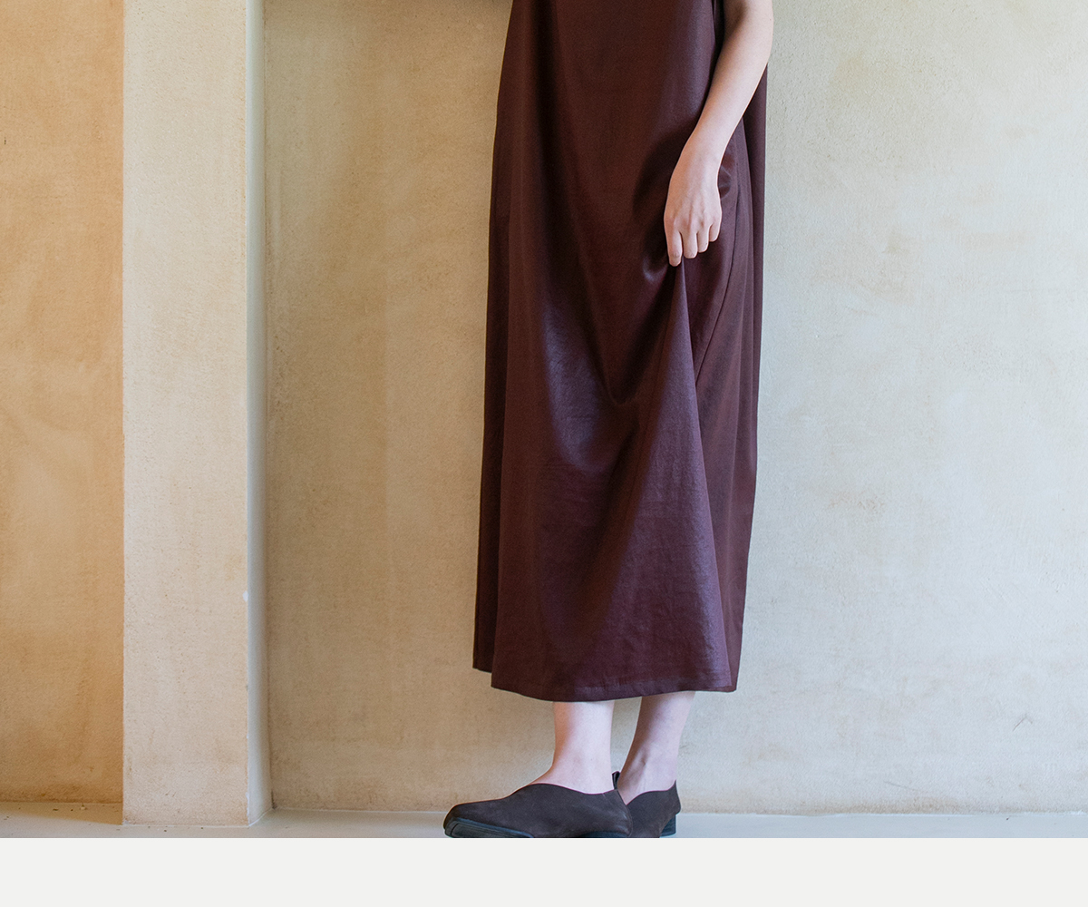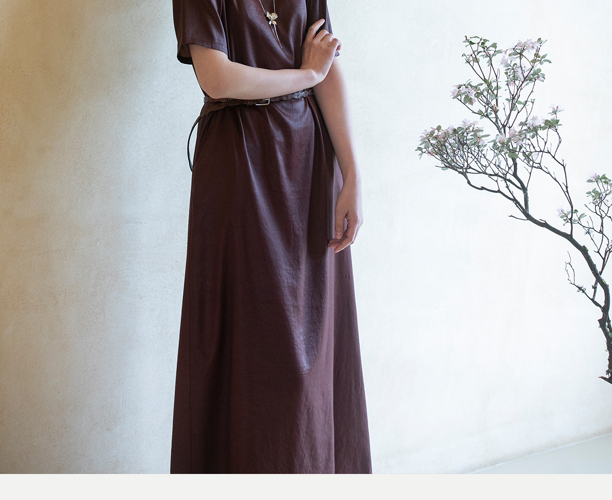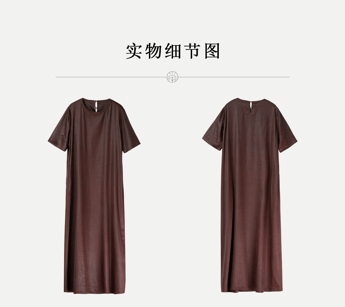 牧衣游原创设计 香云纱净色连衣裙女夏季禅意复古新中式长裙 初叶
