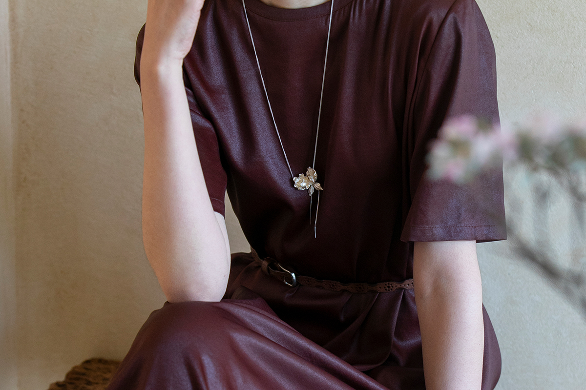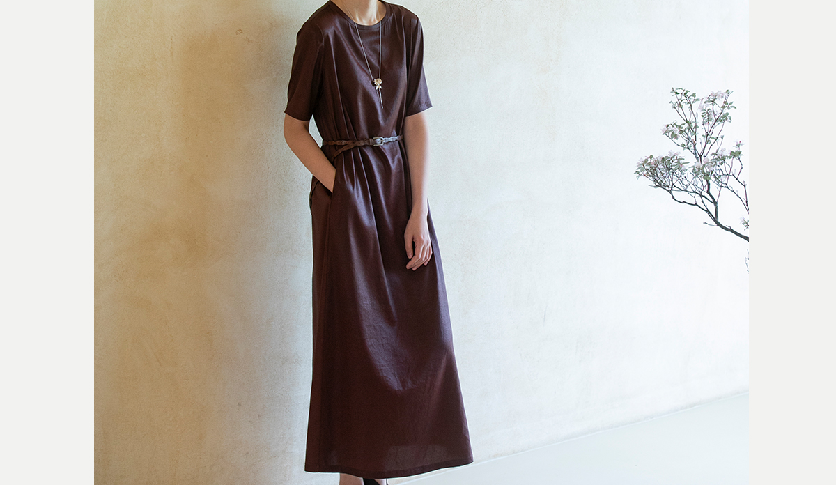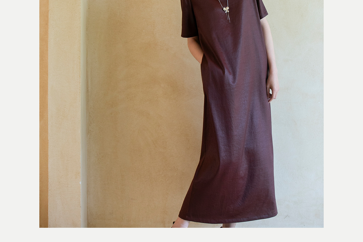 牧衣游原创设计 香云纱净色连衣裙女夏季禅意复古新中式长裙 初叶