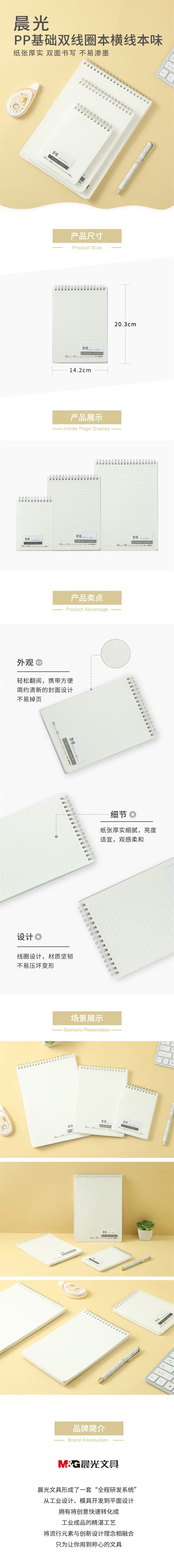 晨光文具笔记本 本味PP面上翻双铁圈横线记事本 80张 A5 A6 A7 便条纸随手记1本