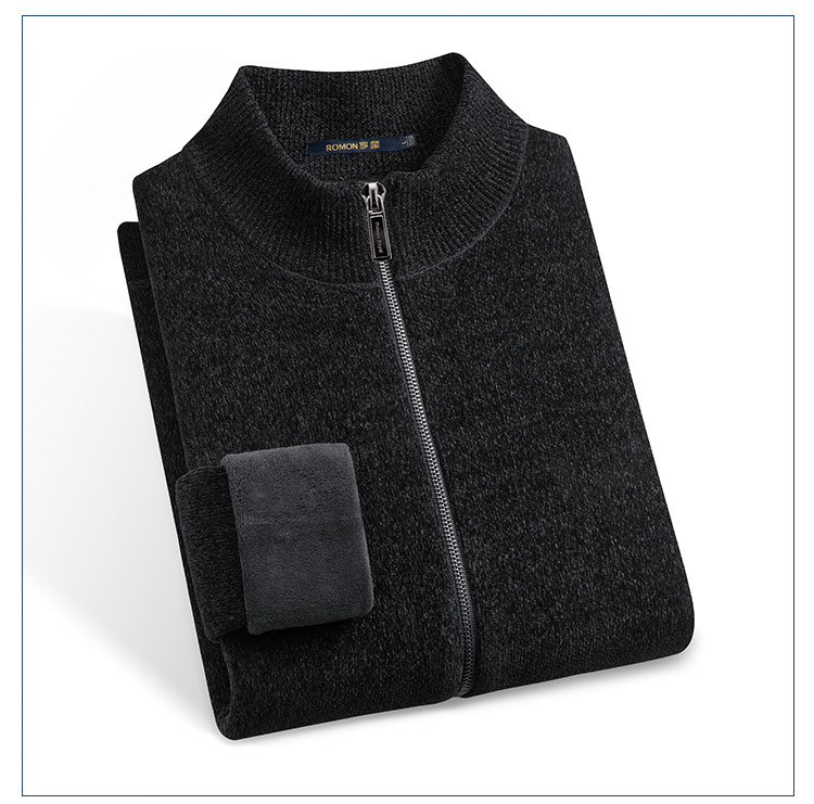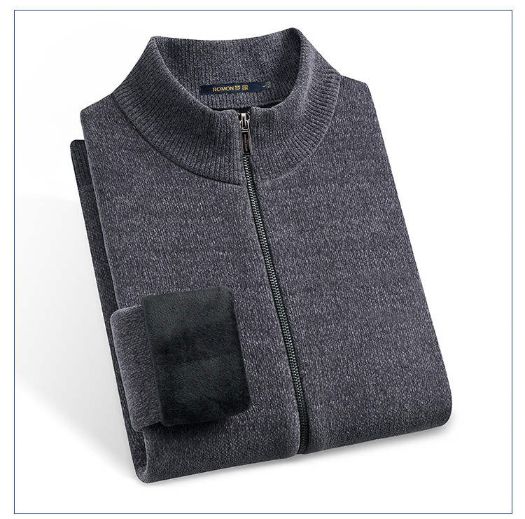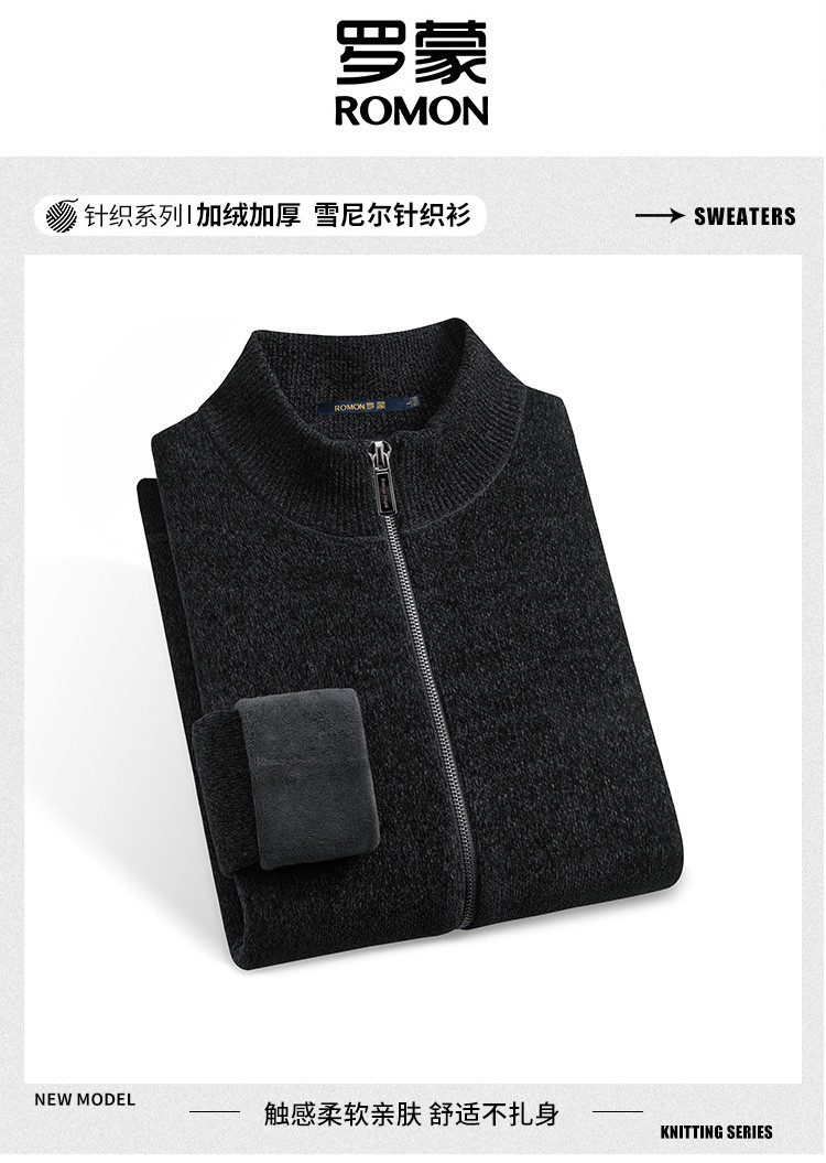 【加绒加厚】罗蒙男士冬季仿羊绒夹克男士外套加绒外套男毛衣外套