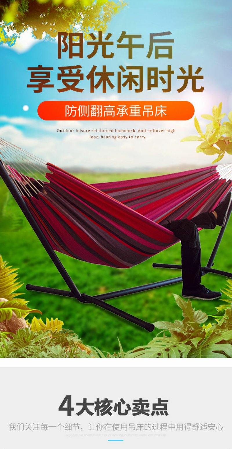 户外吊床成人便携组装加厚帆布防侧翻旅行专用用品露营支架吊床