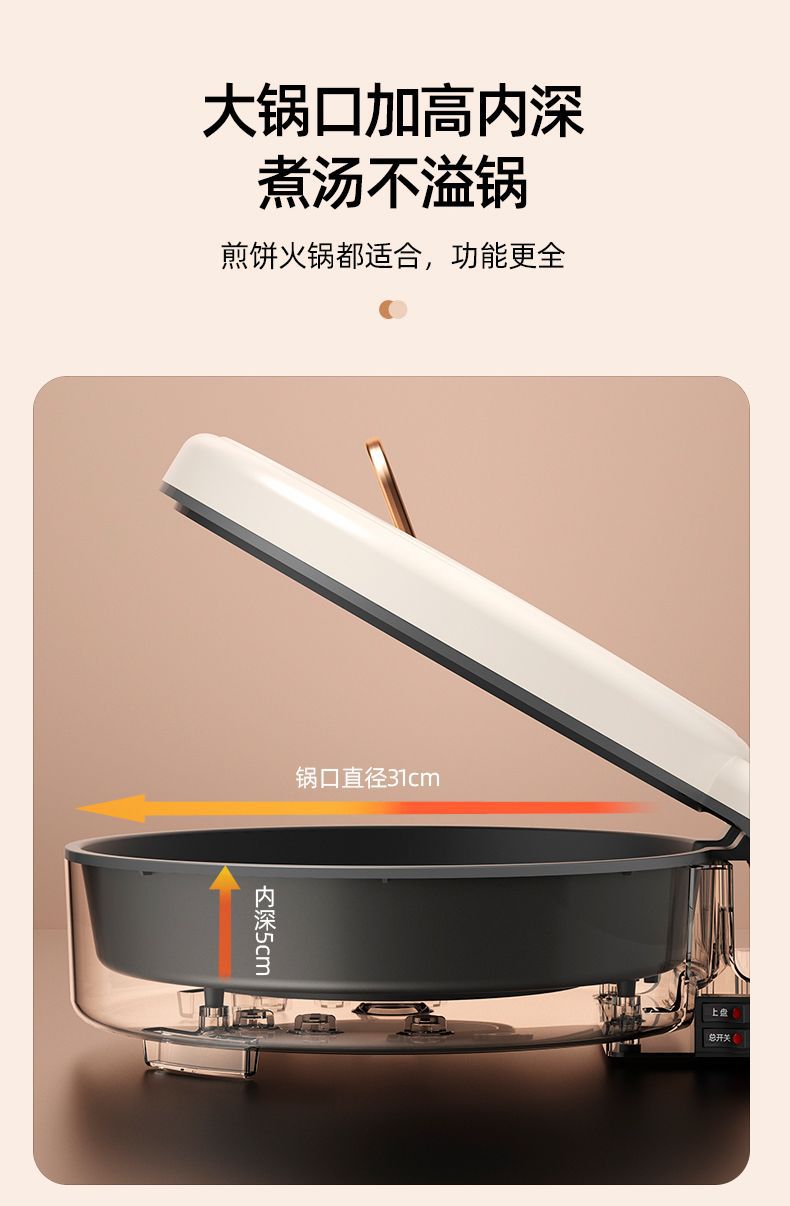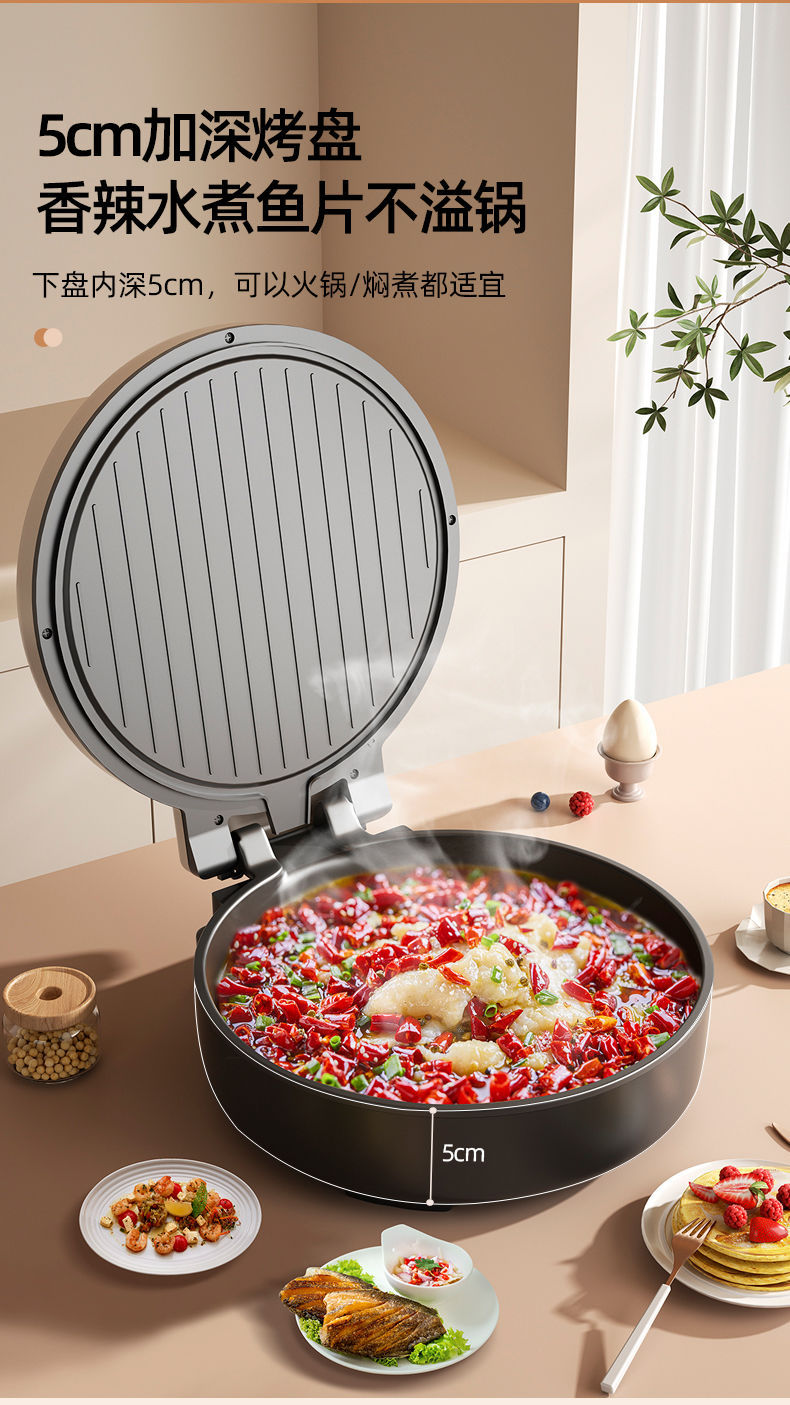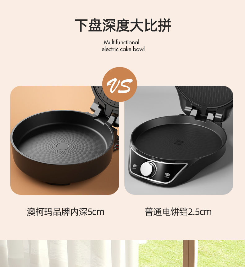 澳柯玛【煎烤烙煮一体】加深电饼铛 家用双面加热薄饼机 炒锅煎煮锅烙饼机 煎饼电饼档