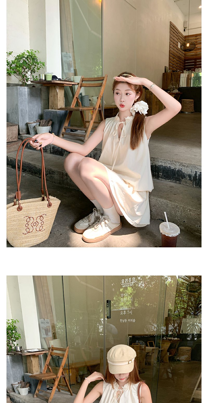 <曾小咸推荐>韩系系带花苞水母无袖连衣短裙
