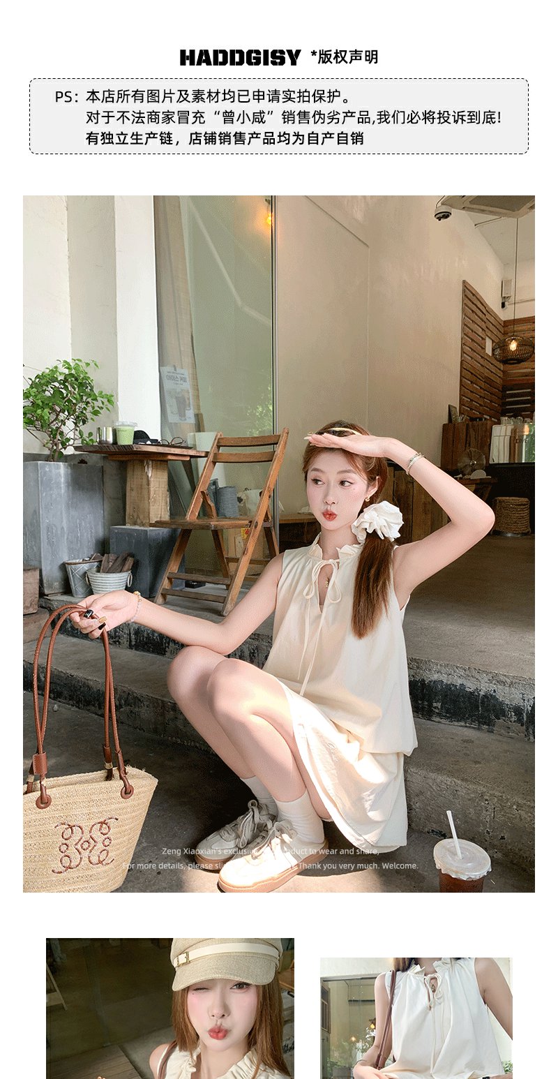 <曾小咸推荐> 假两件蝴蝶结镂空背心 日常69/件 活动价49/件!!【预售3-15天!!】