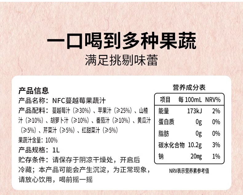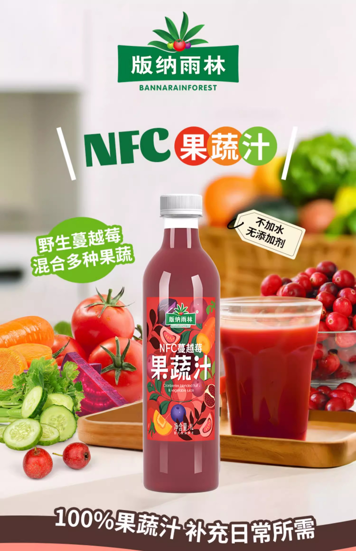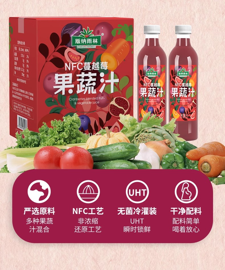 版纳雨林蔓越莓果蔬汁1L*6瓶【XPTX】