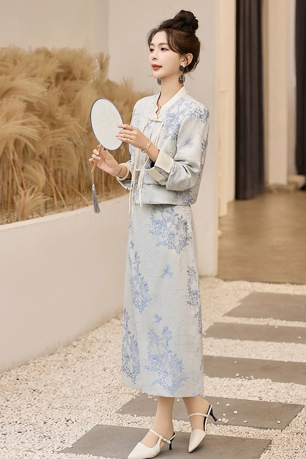 ANSUABEL 新中式国风提花外套半裙套装 20034