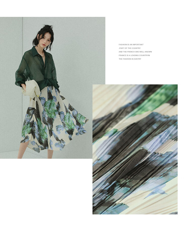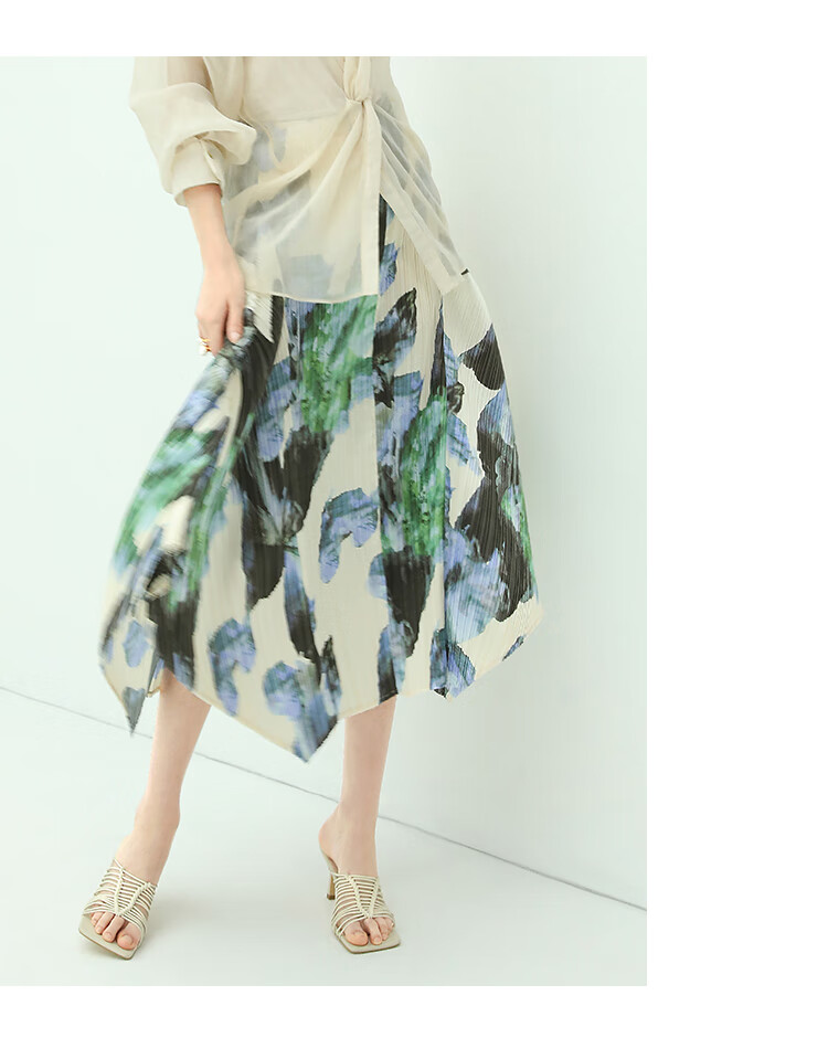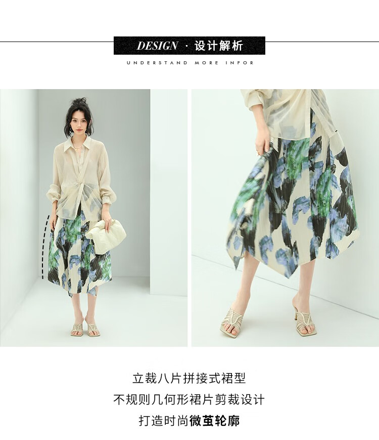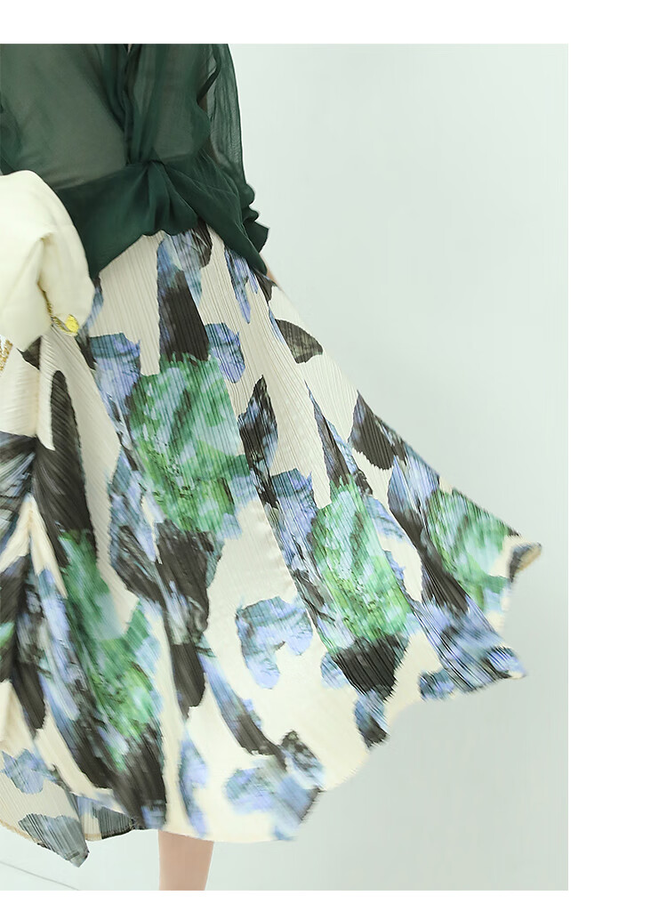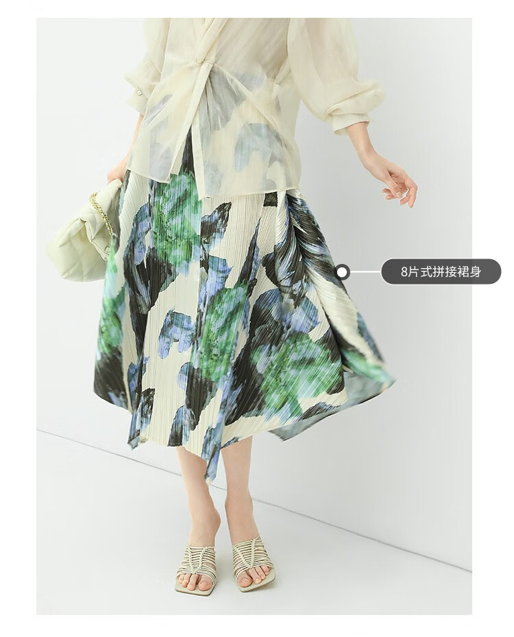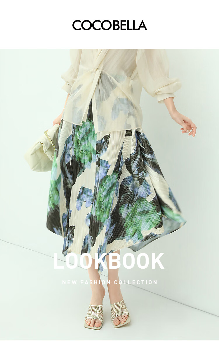 COCOBELLA重工压褶油画风半身裙女气质不规则伞裙HS529