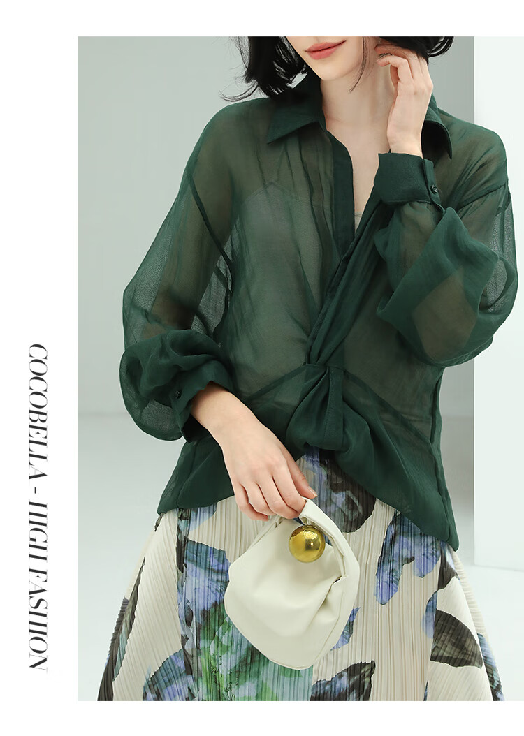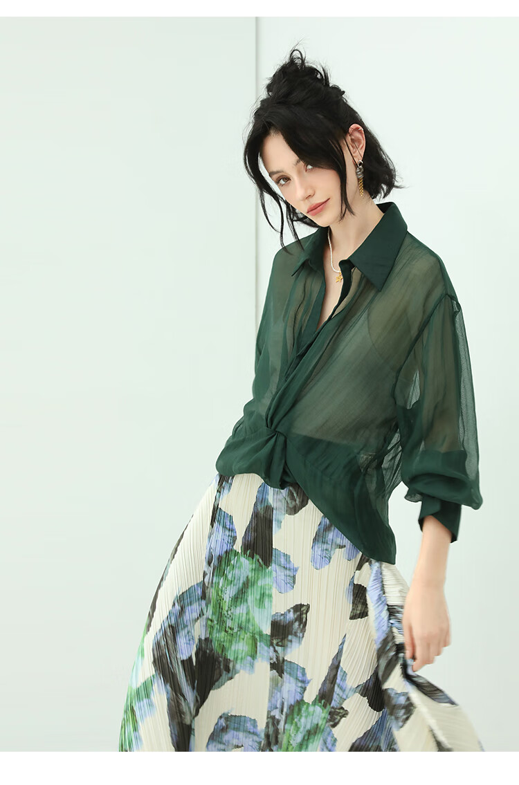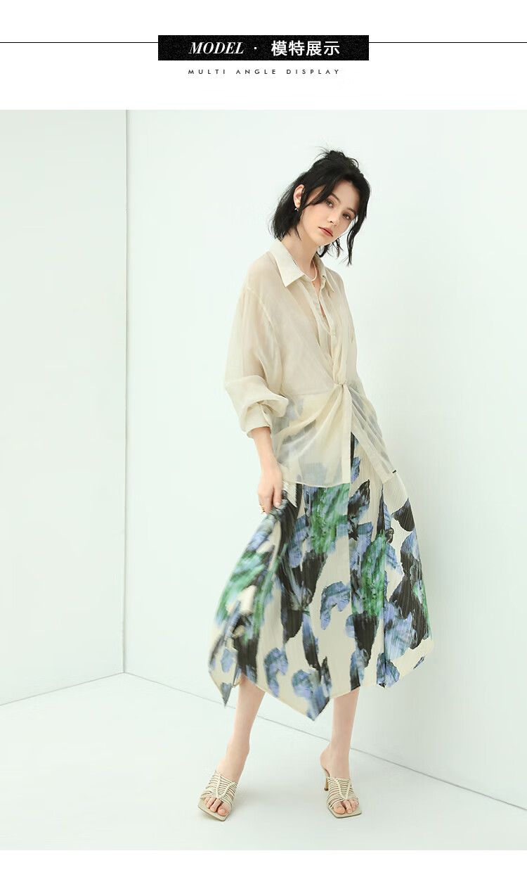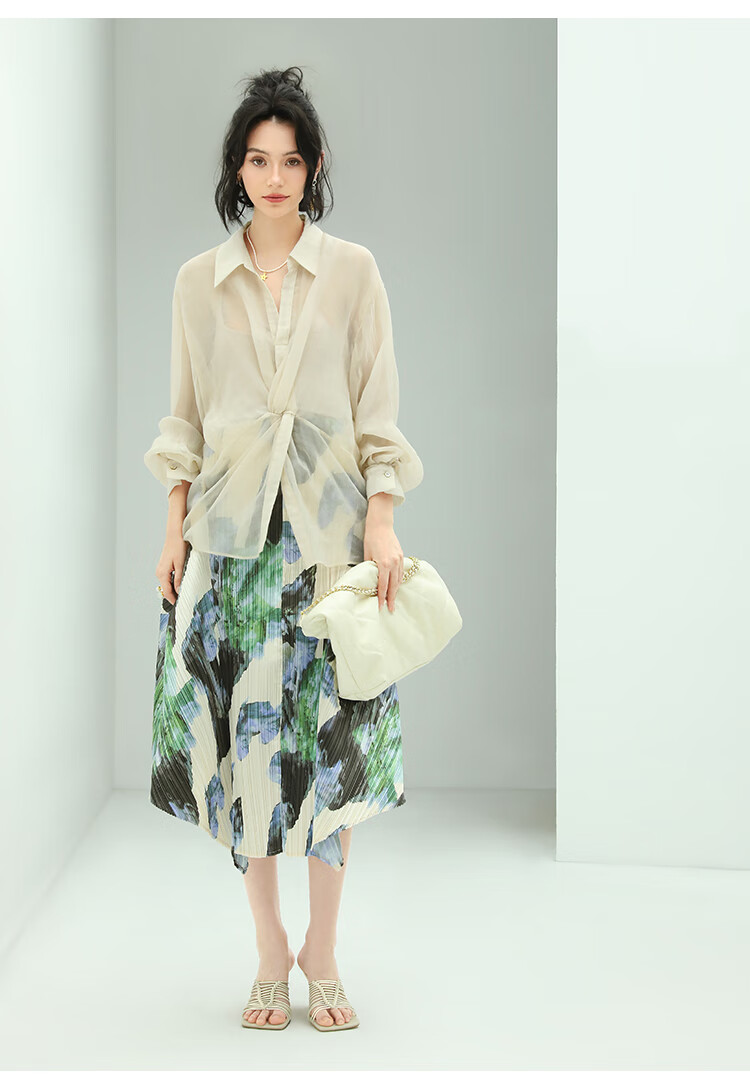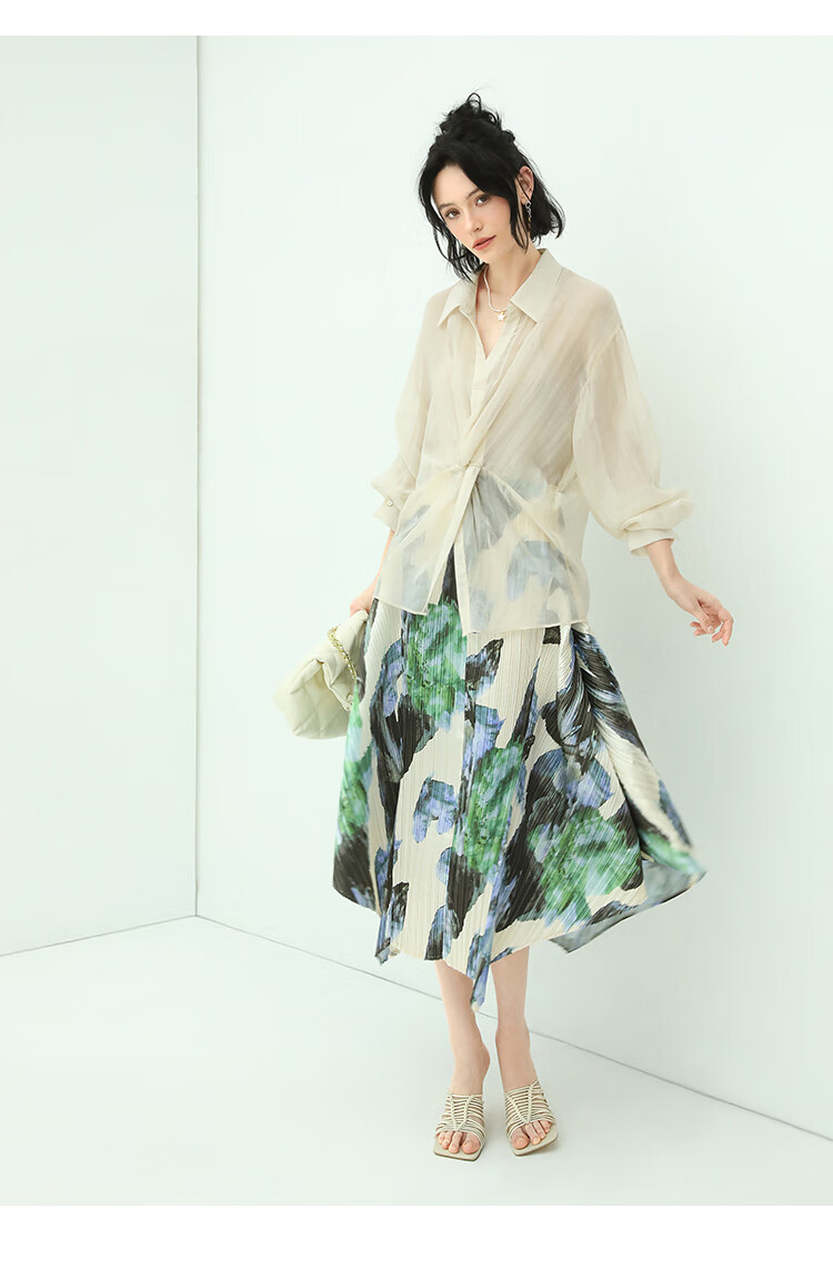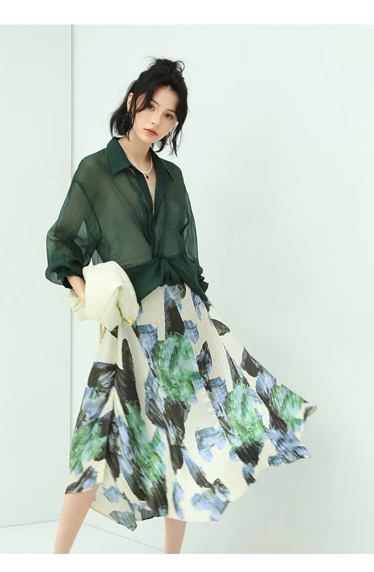 COCOBELLA重工压褶油画风半身裙女气质不规则伞裙HS529