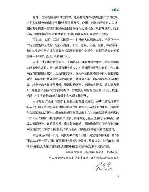 碳达峰碳中和目标的实现,需要国家、地方、行业、企业等不同层面共同努力,需要明确的规划指引,需要多方面有效政策的协同支持,需要各种基础条件的支撑。本书对上述方面均进行了介绍,并给出了相关的实践案例,是开展双碳工作的有益参考。