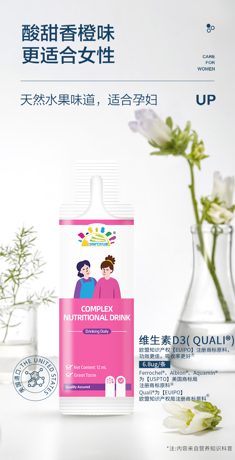 叁佰添女士液体*叶酸复合维生素 好入口【72小时发货】