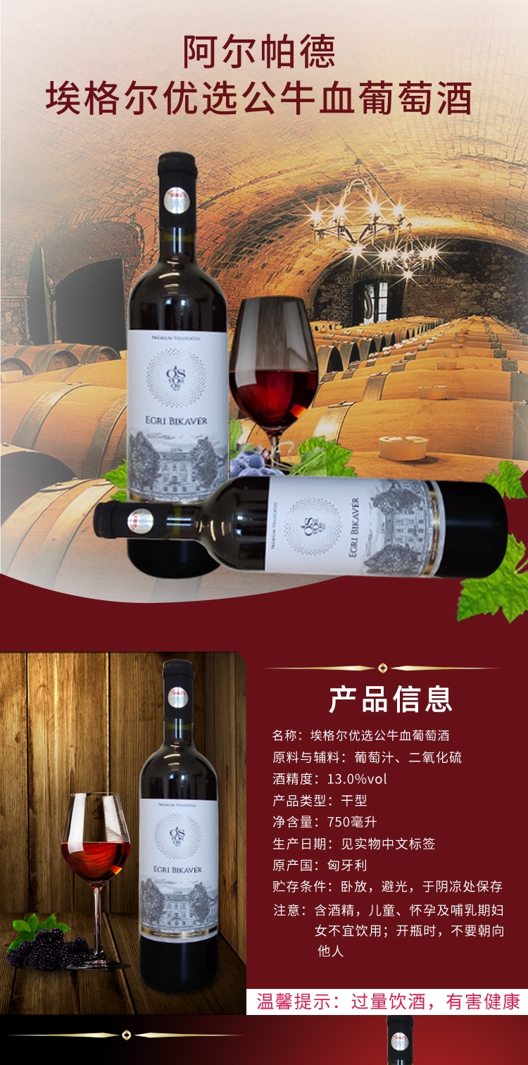 【中欧班列直供】匈牙利葡萄酒 阿尔帕德埃格尔优选公牛血葡萄酒750ml 原装进口