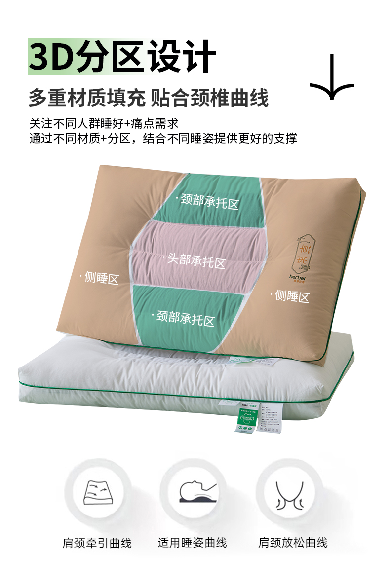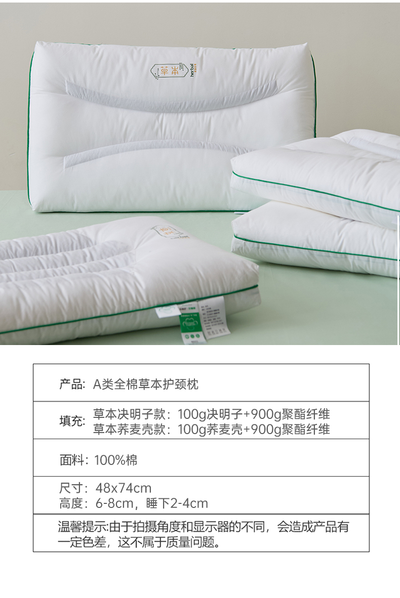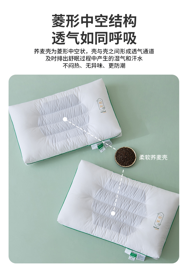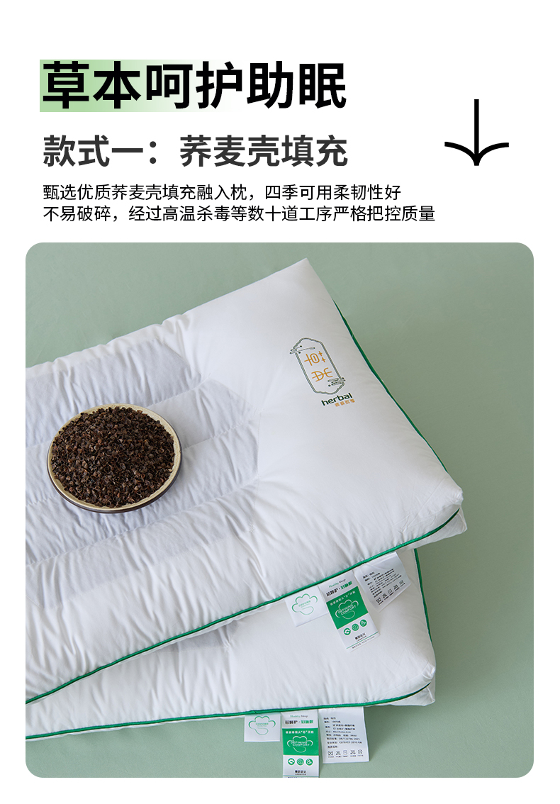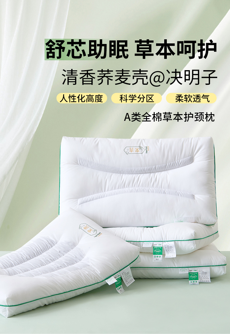 自然醒A类全棉草本护颈枕荞麦壳枕头枕芯护颈椎助睡眠成人家用决明子低整头一对装XK