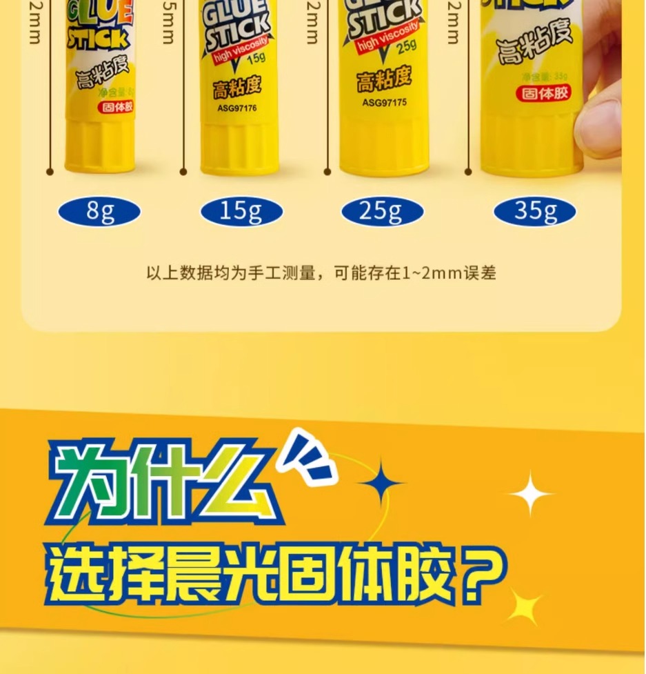 晨光固体胶儿童小学生票办公据粘贴高粘度胶棒diy手工制作专用透明固体胶15g/25g