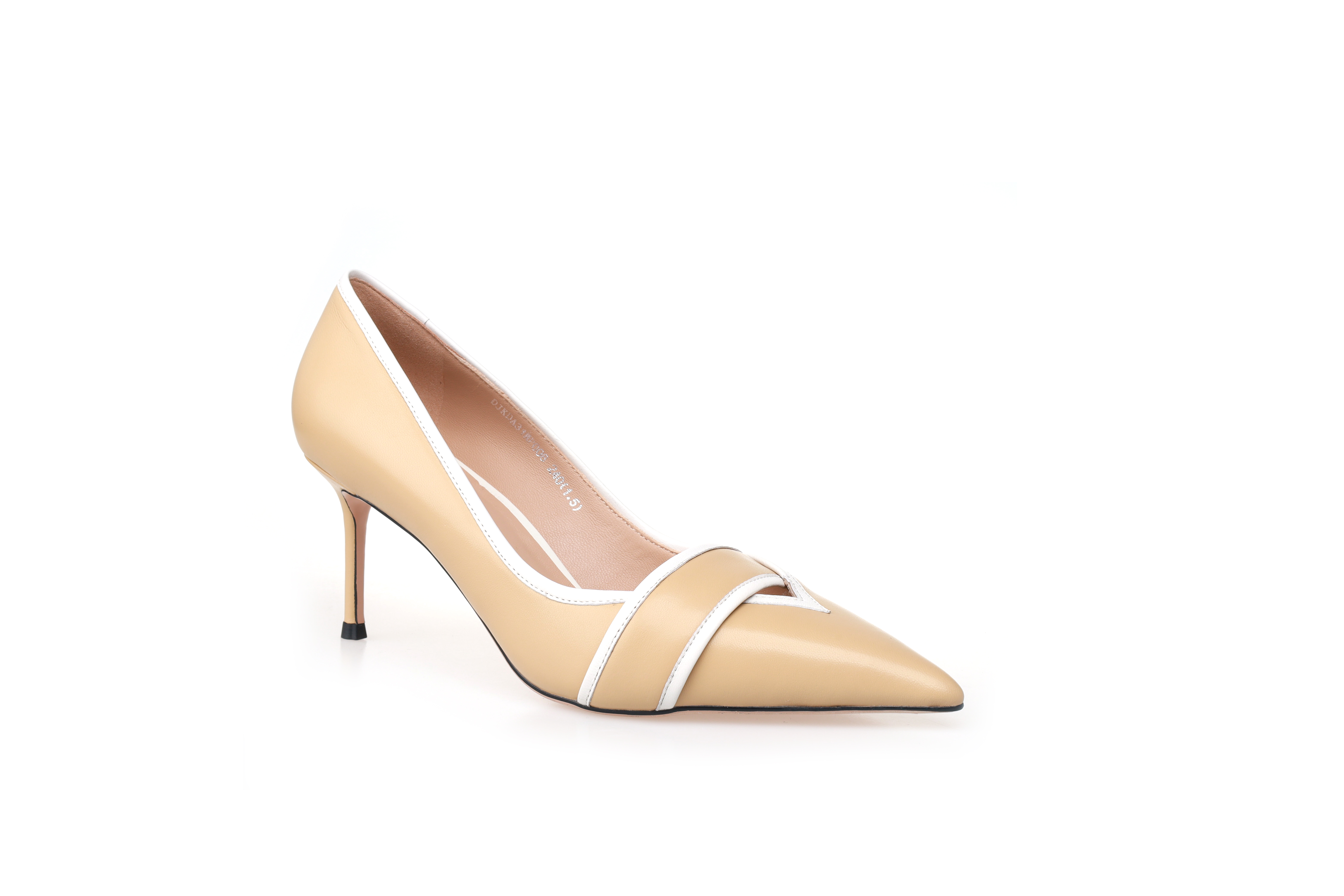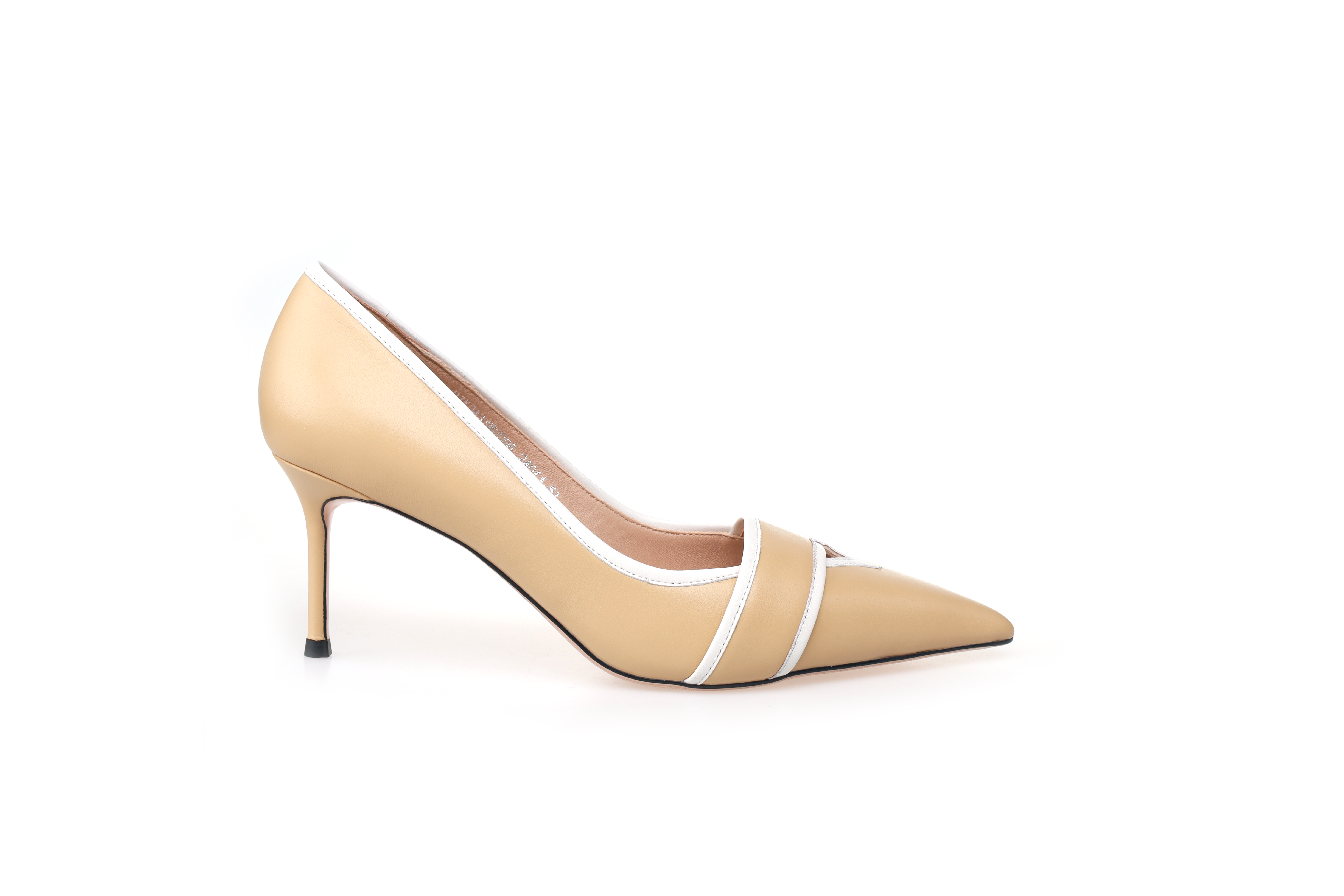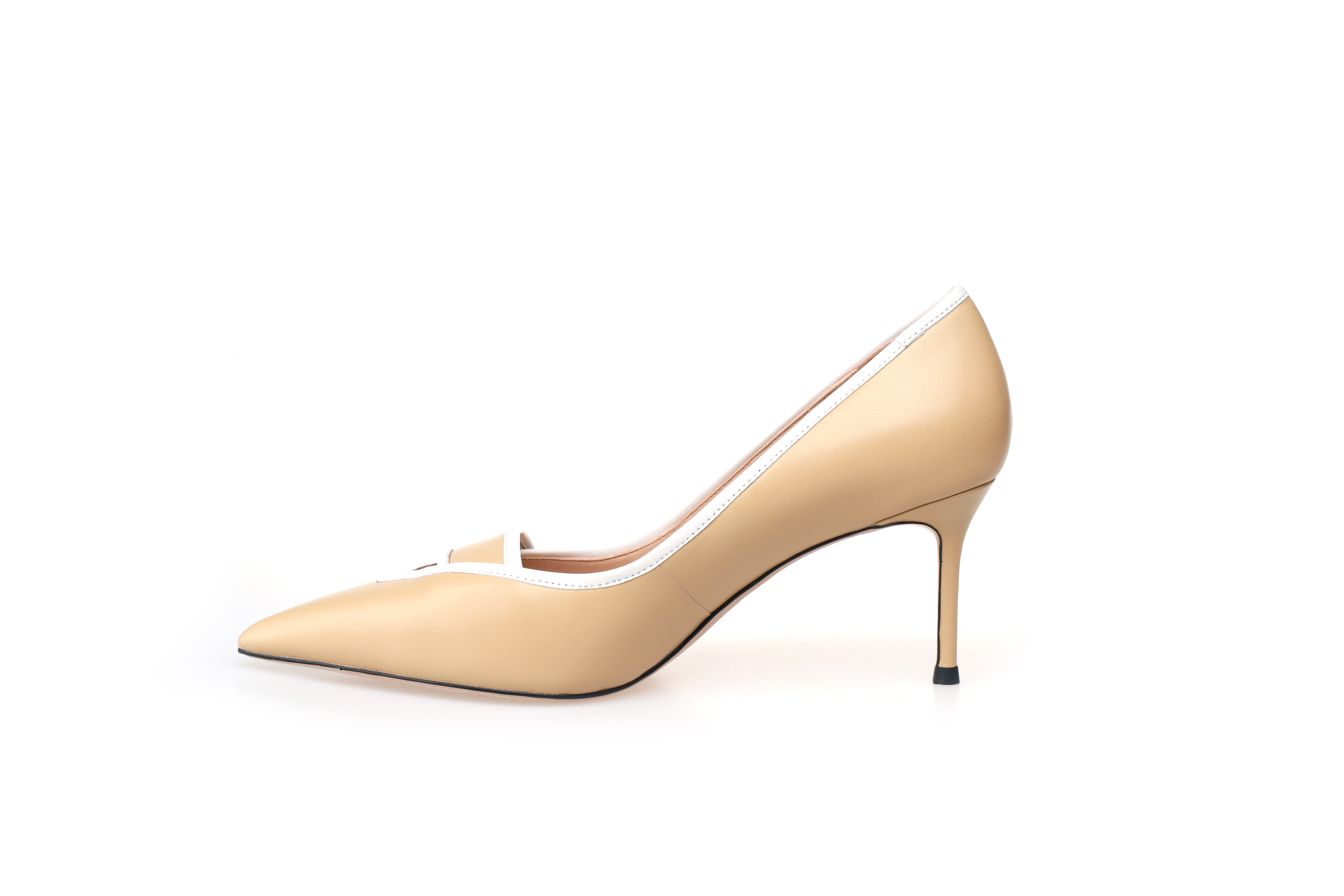 豪麟名鞋奥莱迪嘉女鞋皮鞋羊皮革DJKDA31WP008杏色 原价1960元