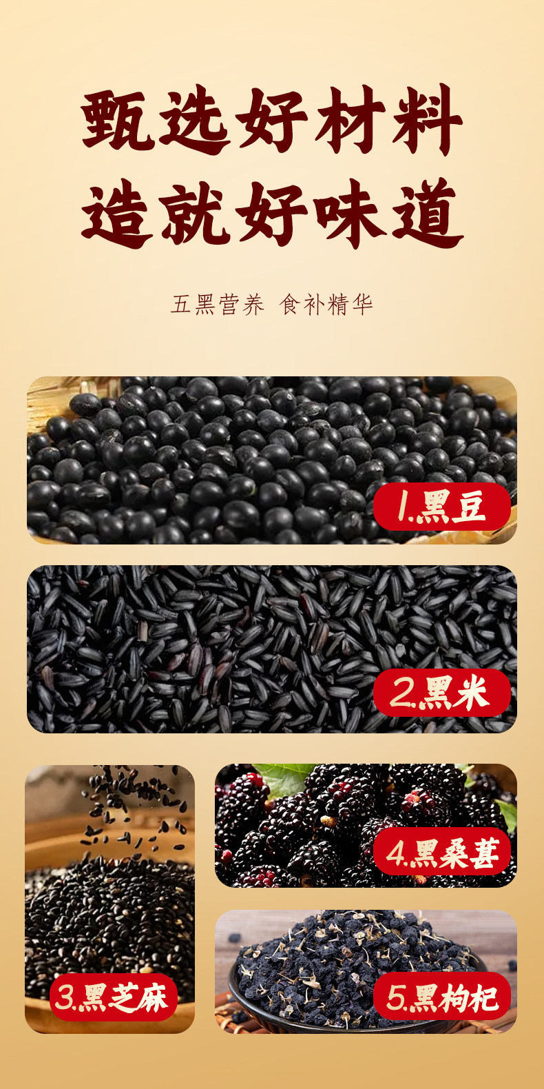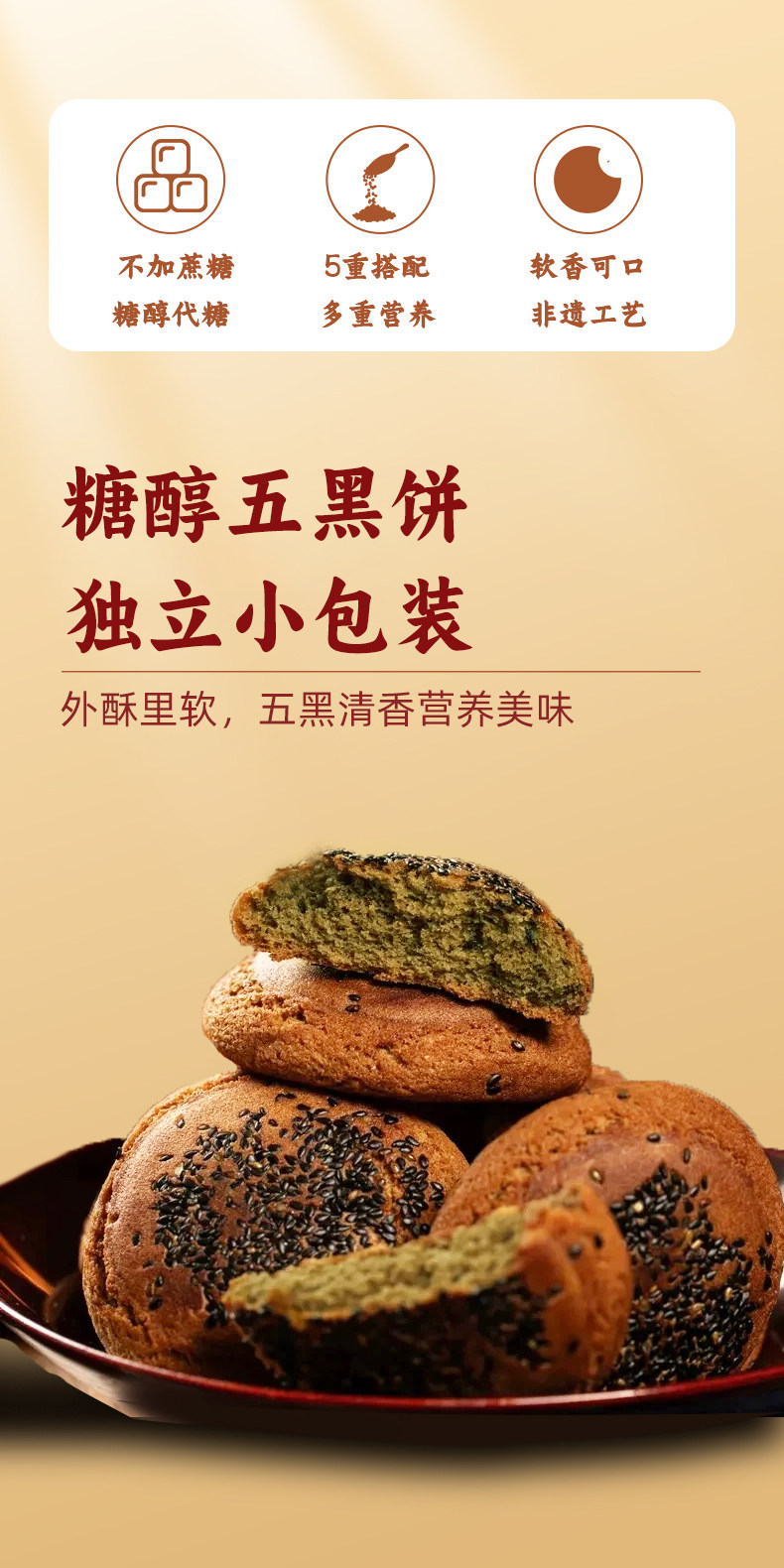 【礼盒】鑫炳记黑豆黑米黑芝麻黑桑葚黑枸杞糖醇五黑饼960g