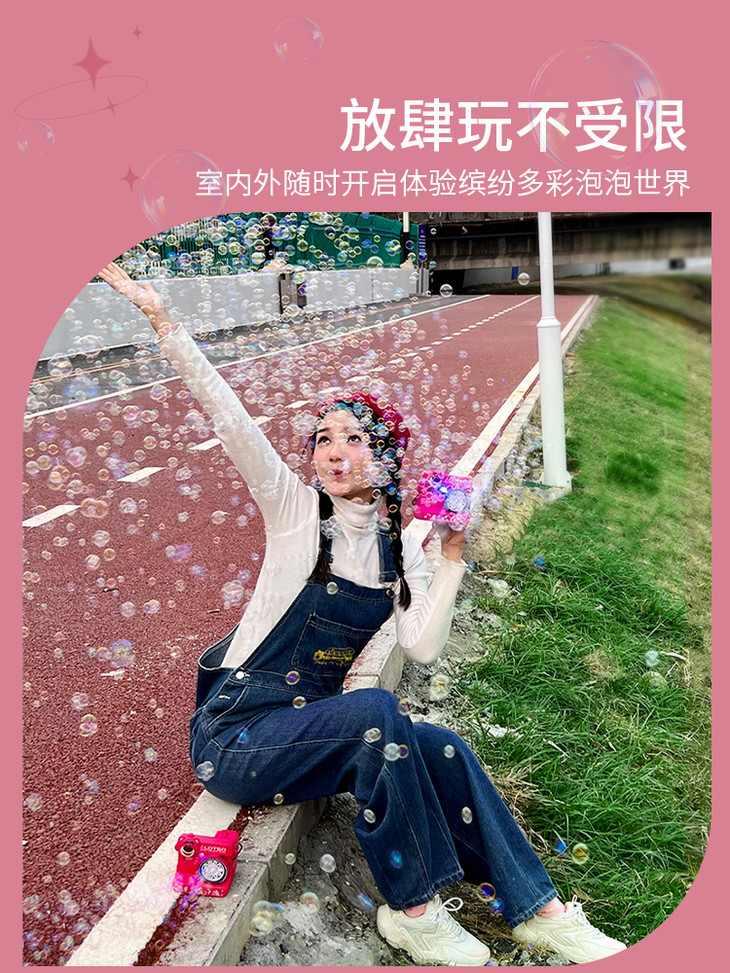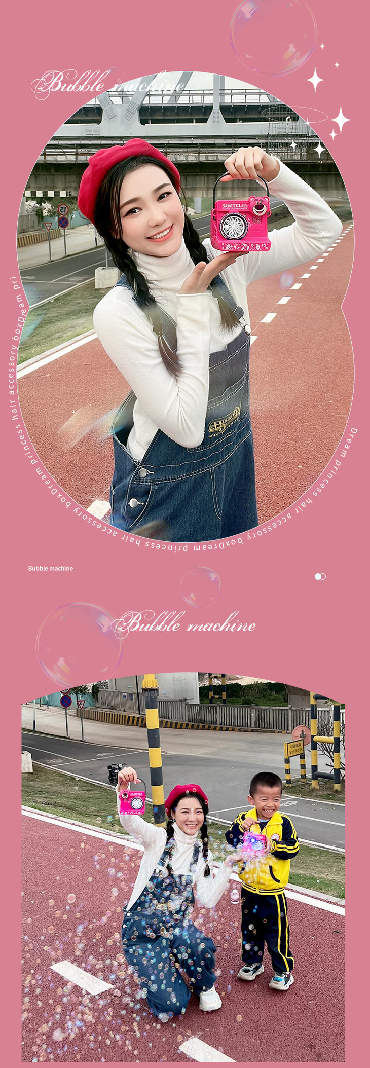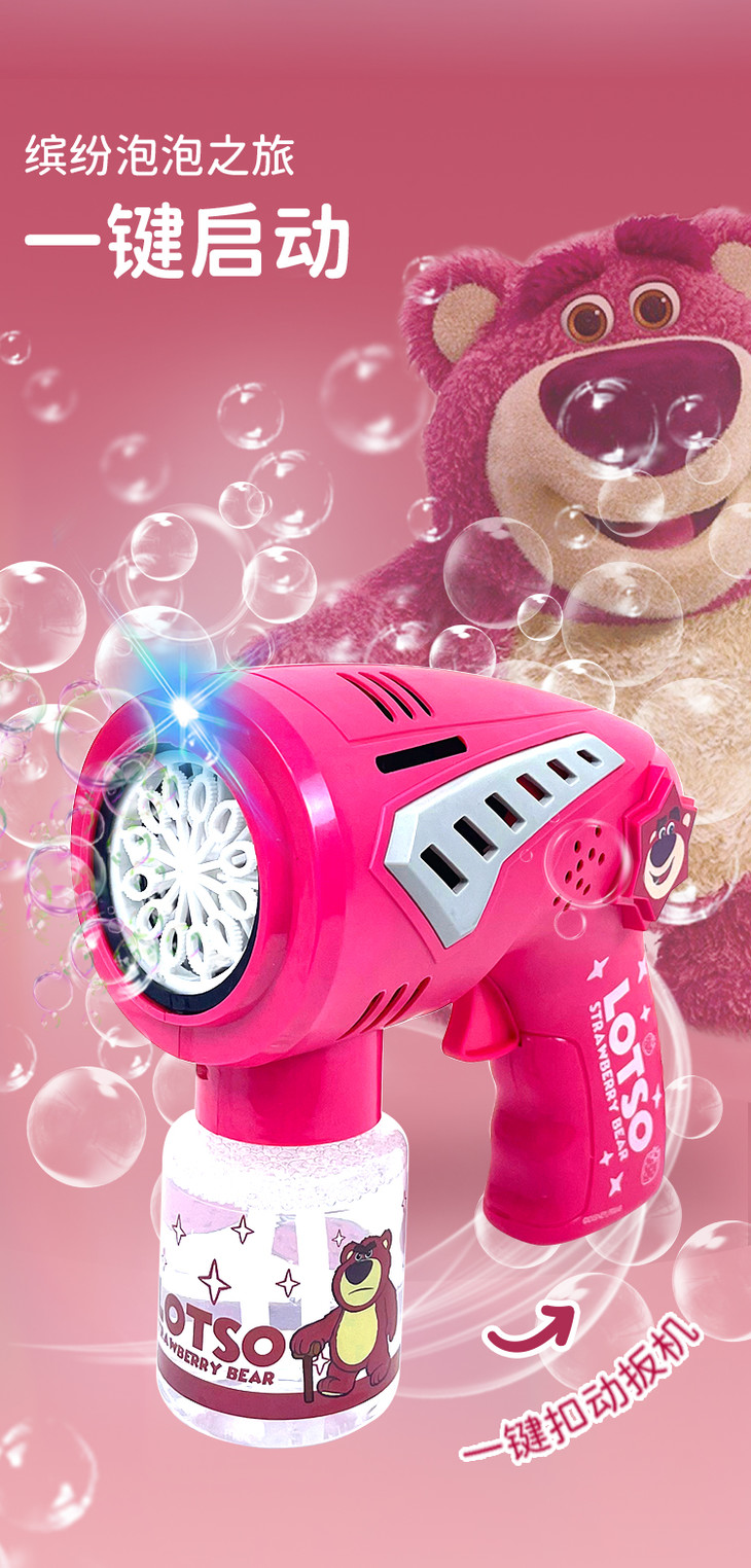迪士尼网红吹泡泡机手持全自电动草莓熊照相机枪儿童玩具2023新款
