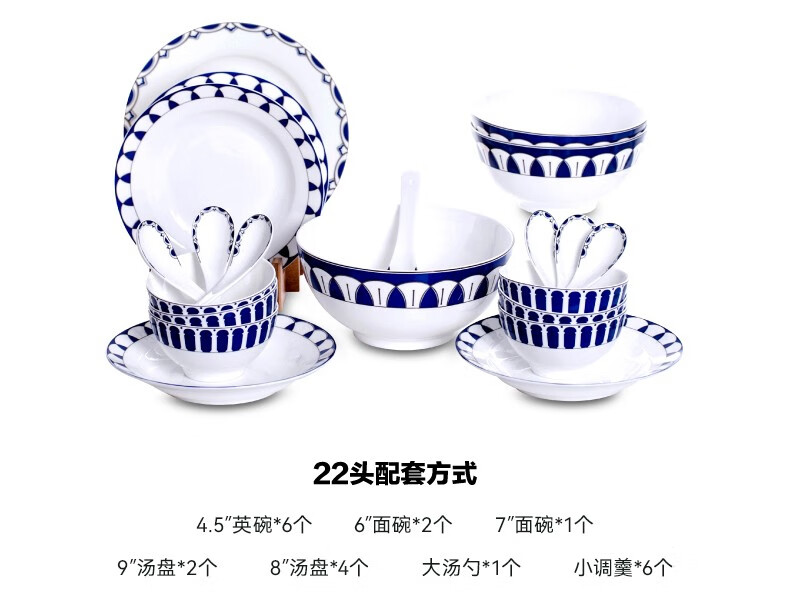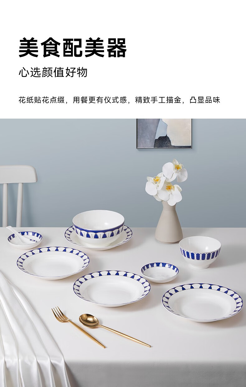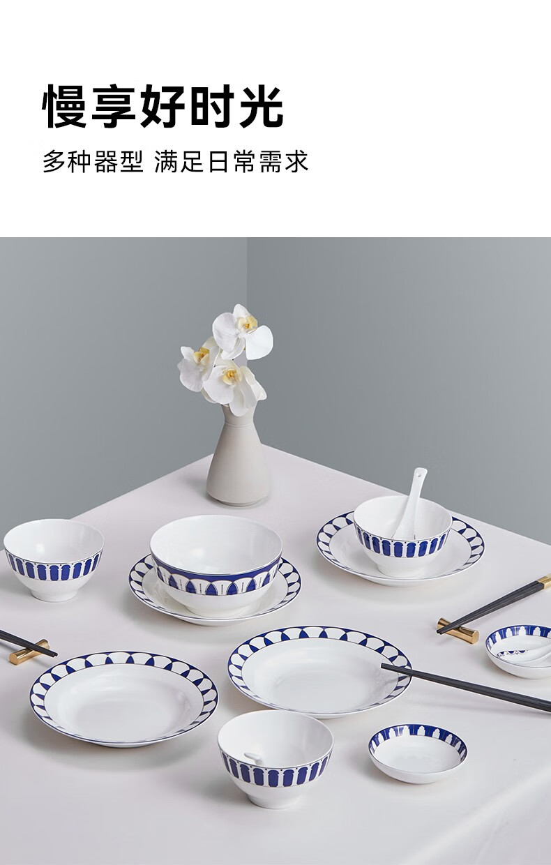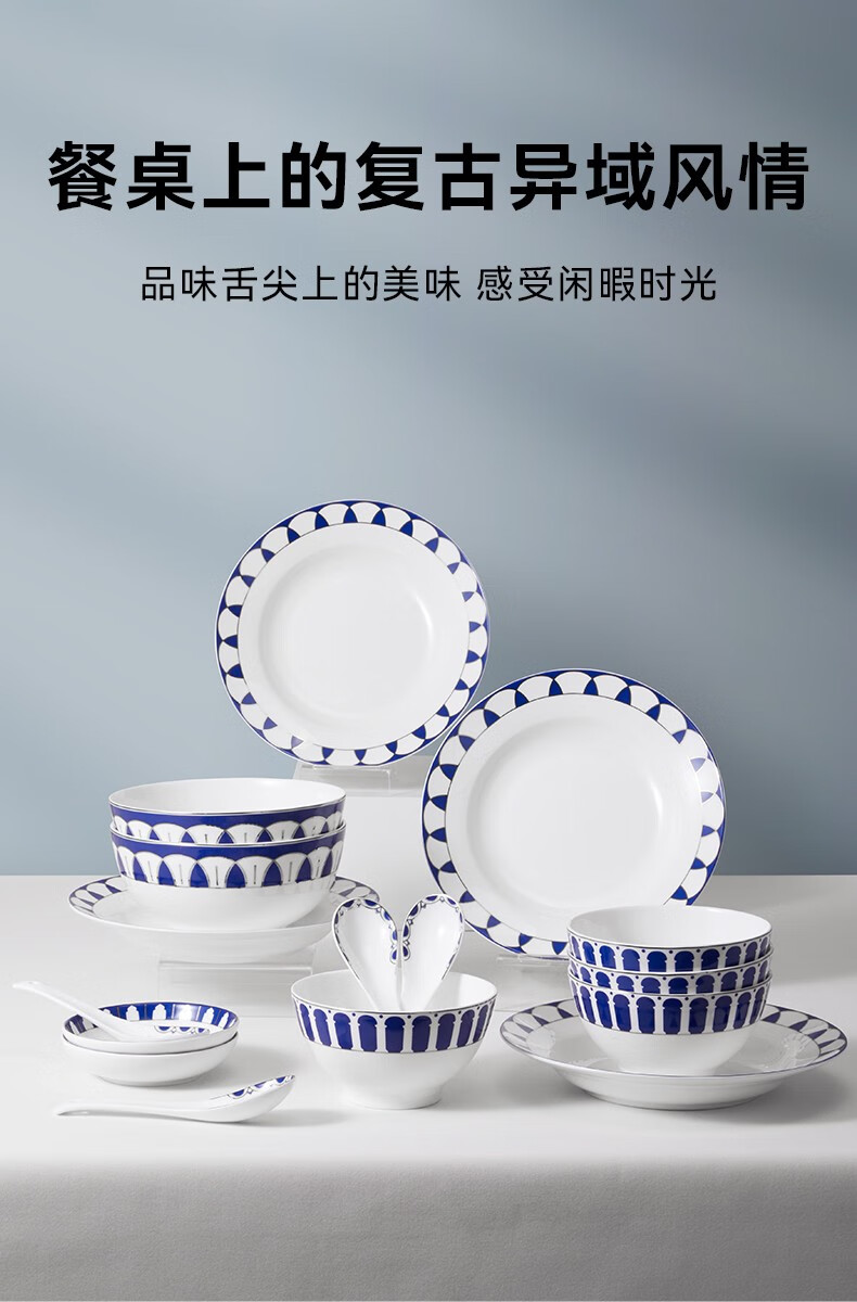 【专柜-多样屋】多样屋骨瓷餐具套装家用碗盘波斯蓝韵餐具22头