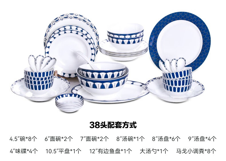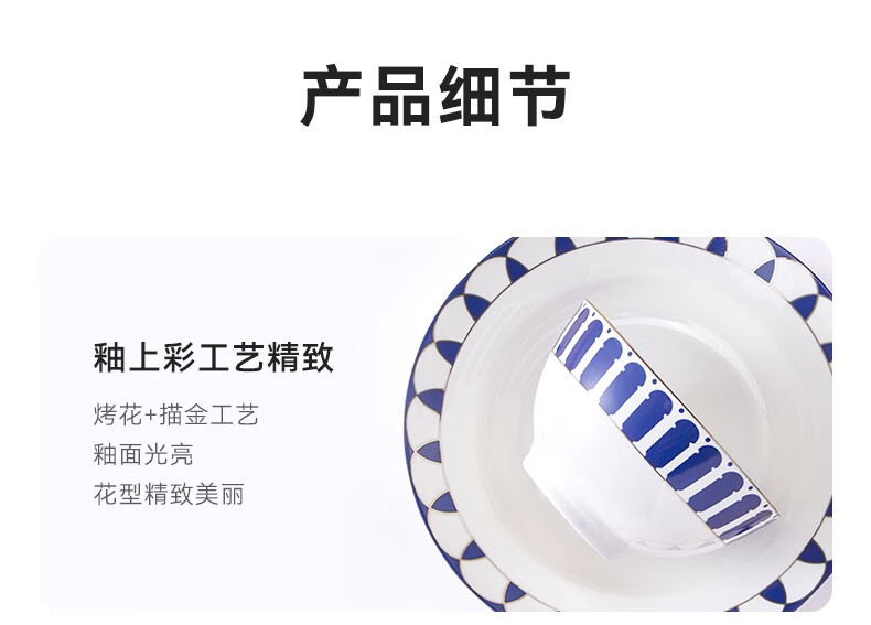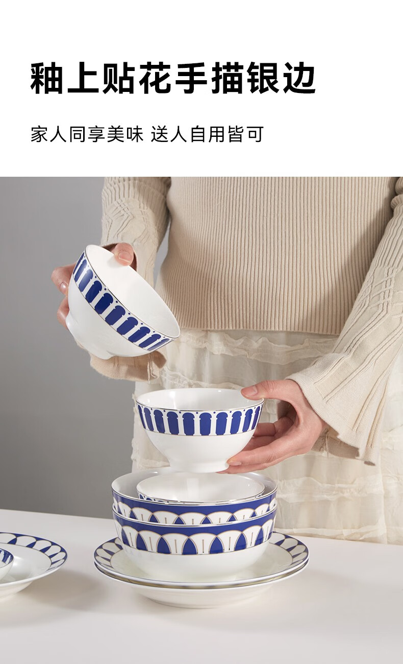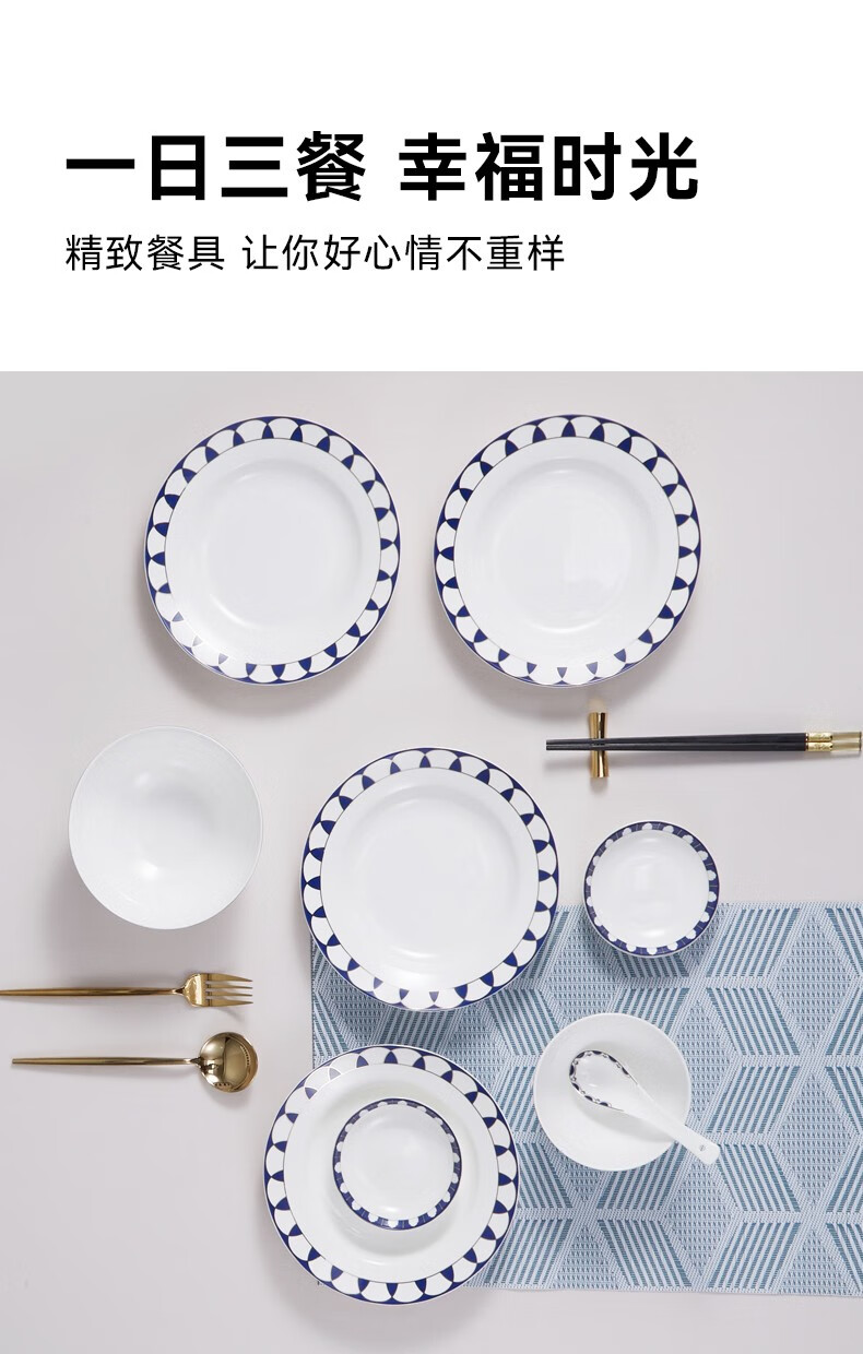【专柜-多样屋】多样屋骨瓷餐具套装家用碗盘波斯蓝韵餐具22头