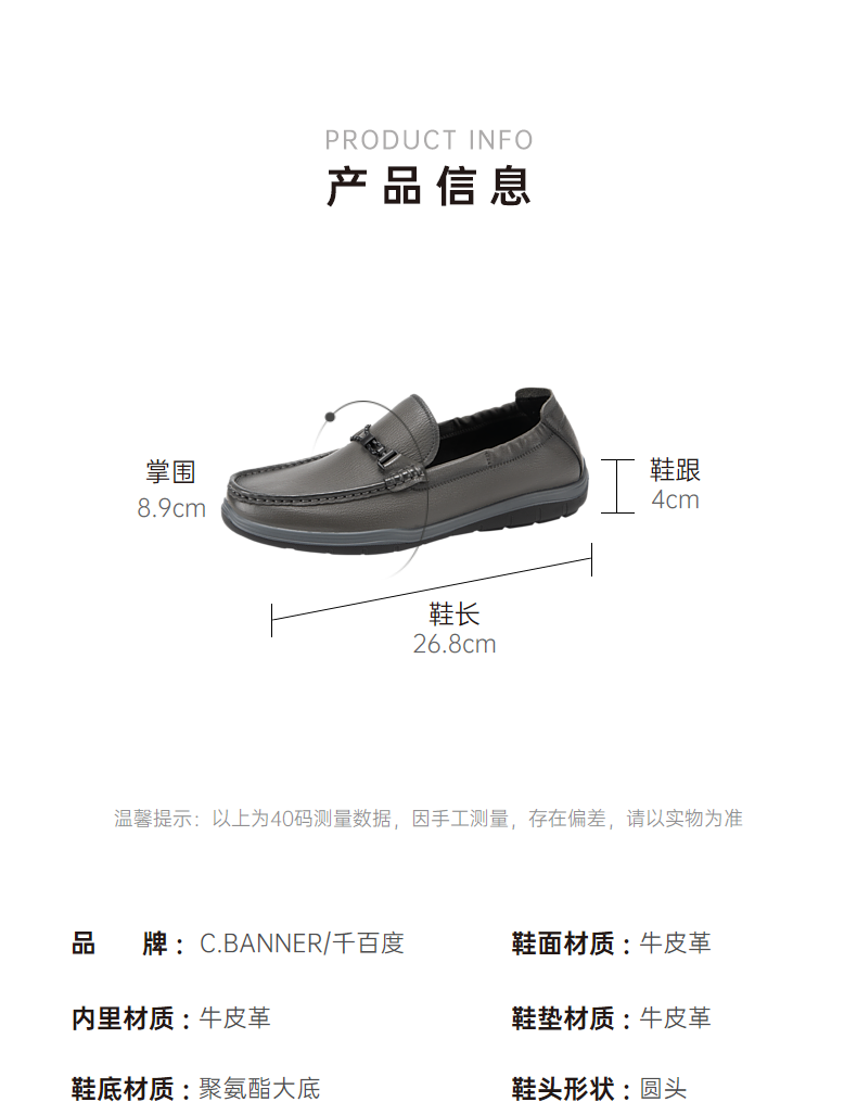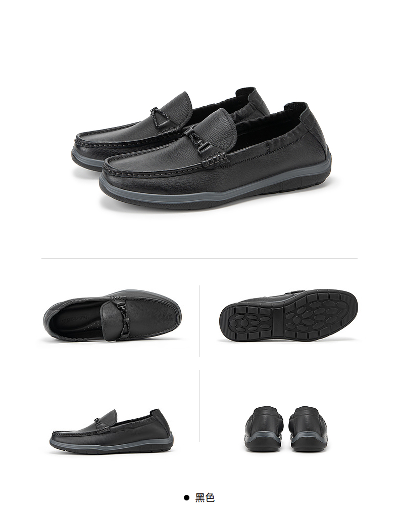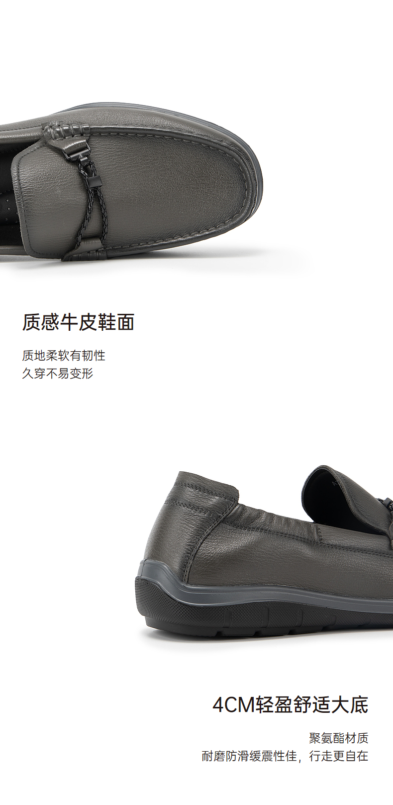 千百度男鞋夏季一脚蹬休闲皮鞋厚底豆豆鞋乐福鞋A24160313