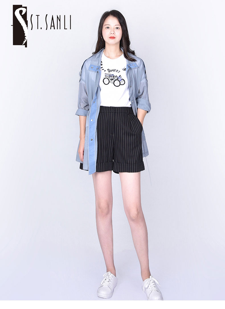 圣三利女装纯色连帽款休闲上衣SL321A12