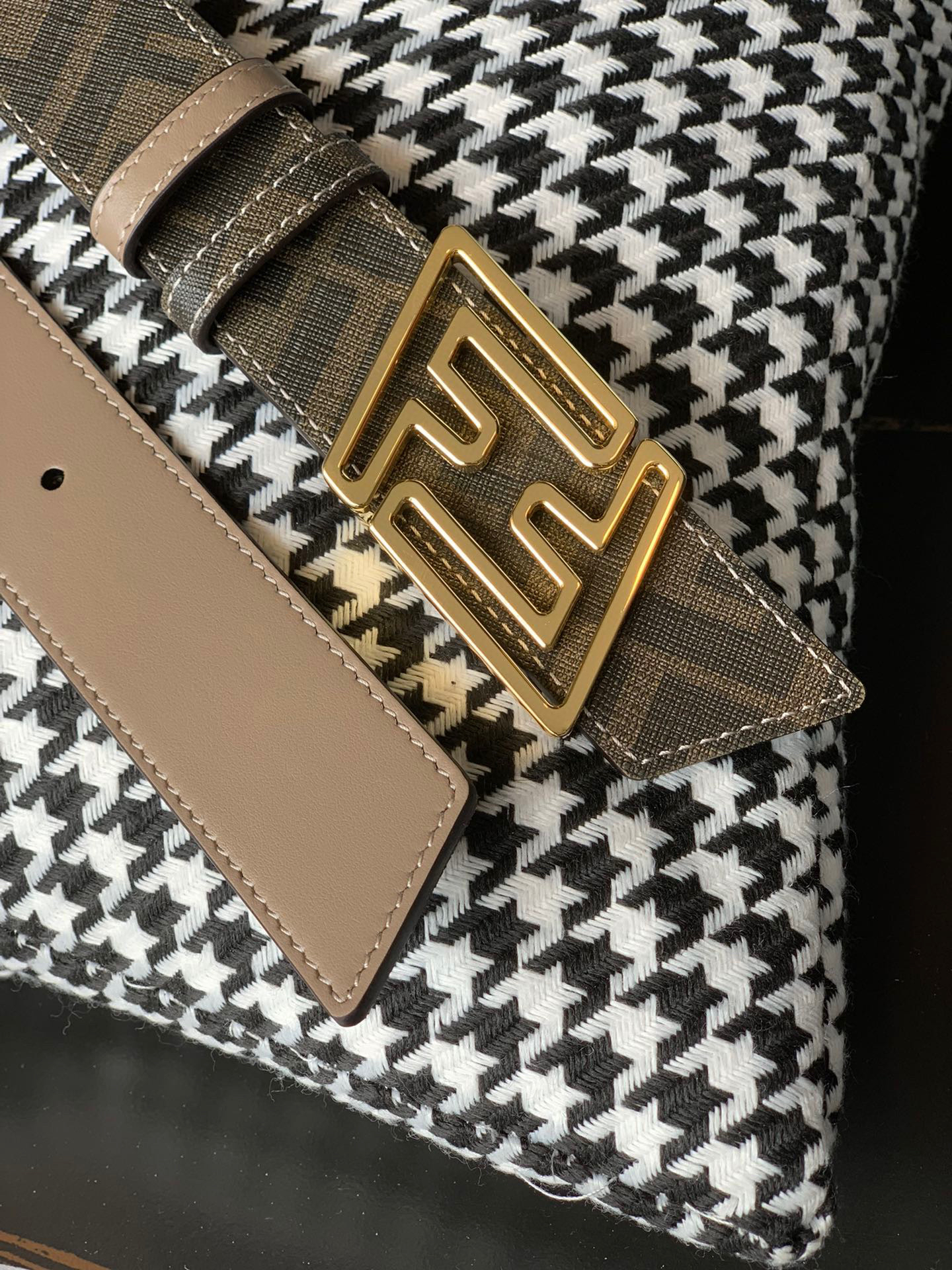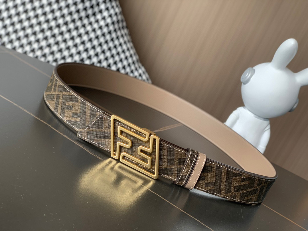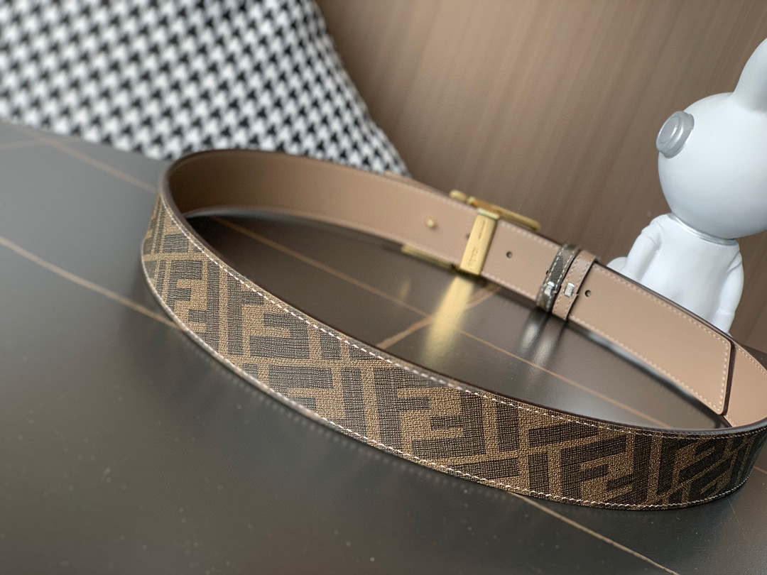 原单……FENDI (芬迪)家族迎来新一季男士全新作品 宽度3.5cm 采用进口意大利小牛皮 FF图案标志双面使用 搭配双F按钉搭扣