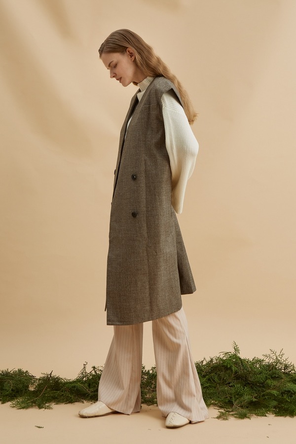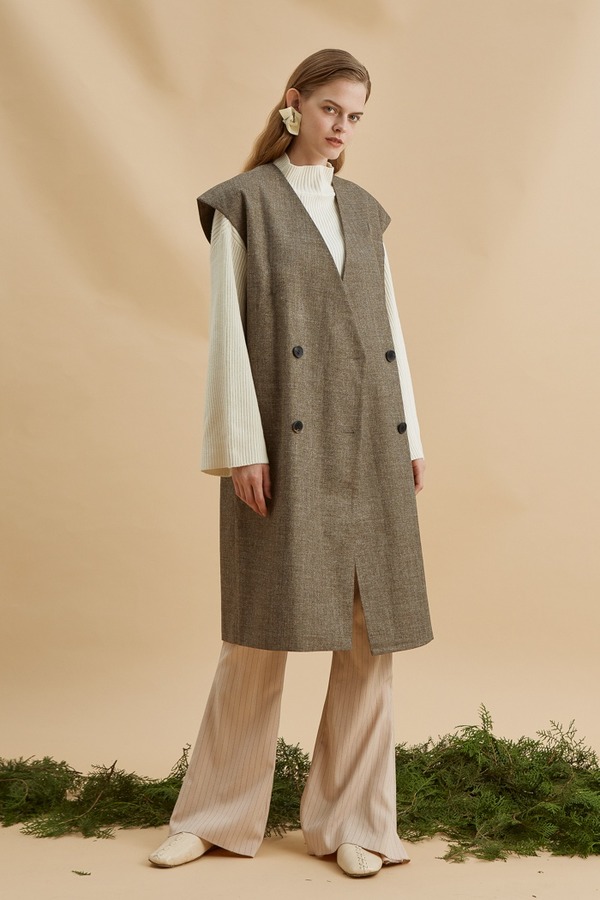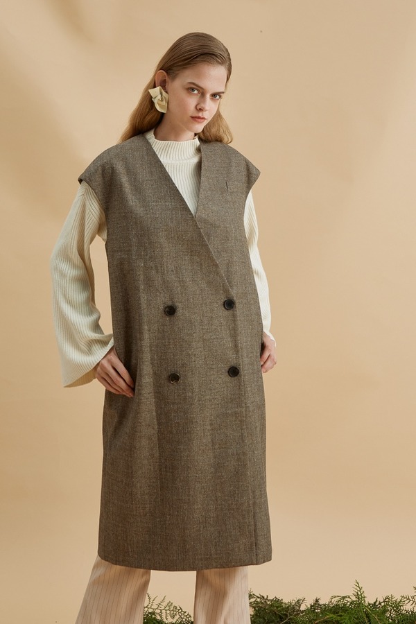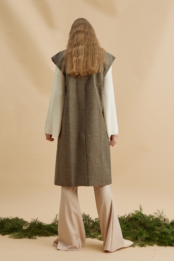 DAMO WANG/王大墨 驼色无领马甲 13954