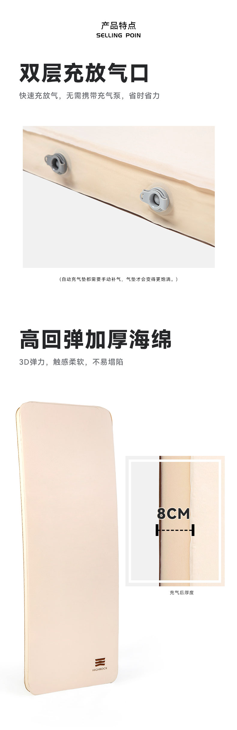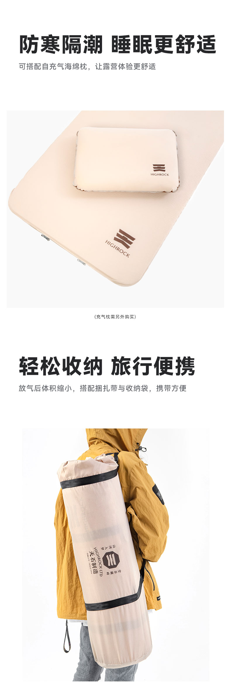 highrock天石户外帐篷自动充气防潮垫单人露营床垫加厚午睡休地垫