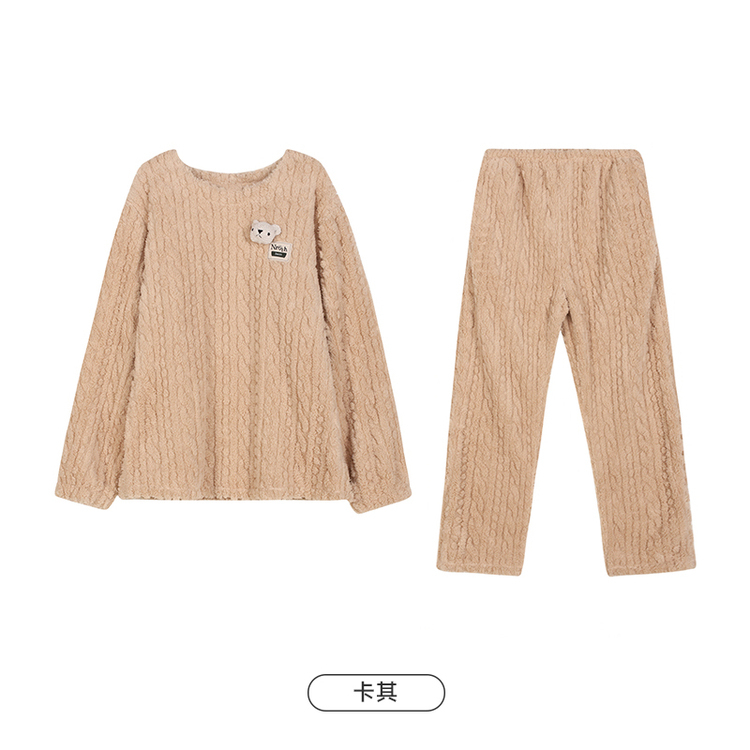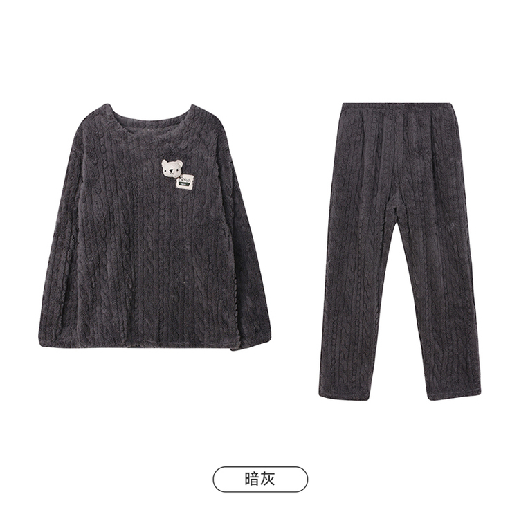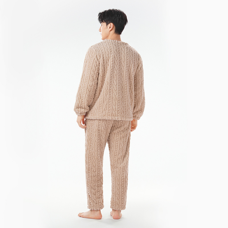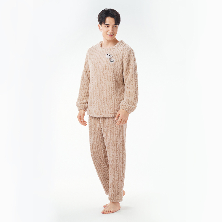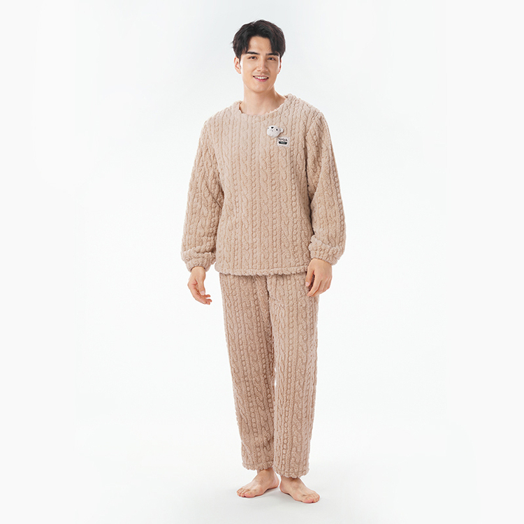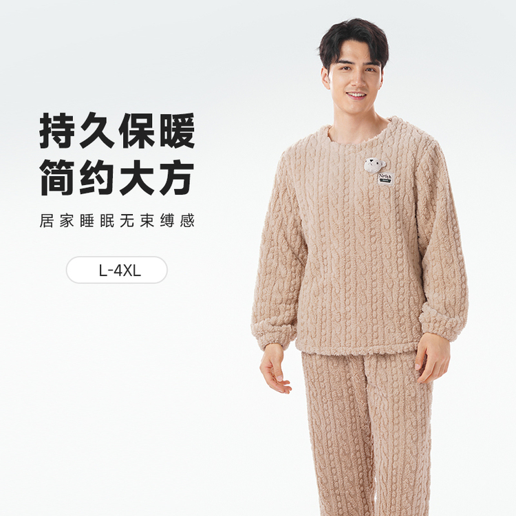 都市丽人睡衣长毛绒提花睡衣男士家居服长袖长裤法兰绒套装FHH0B8