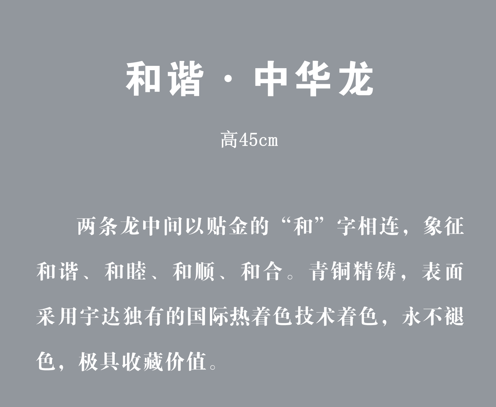 宇达青铜摆件 十二生肖龙《和谐 中华龙》家居 手工艺品 装饰摆件 高45cm