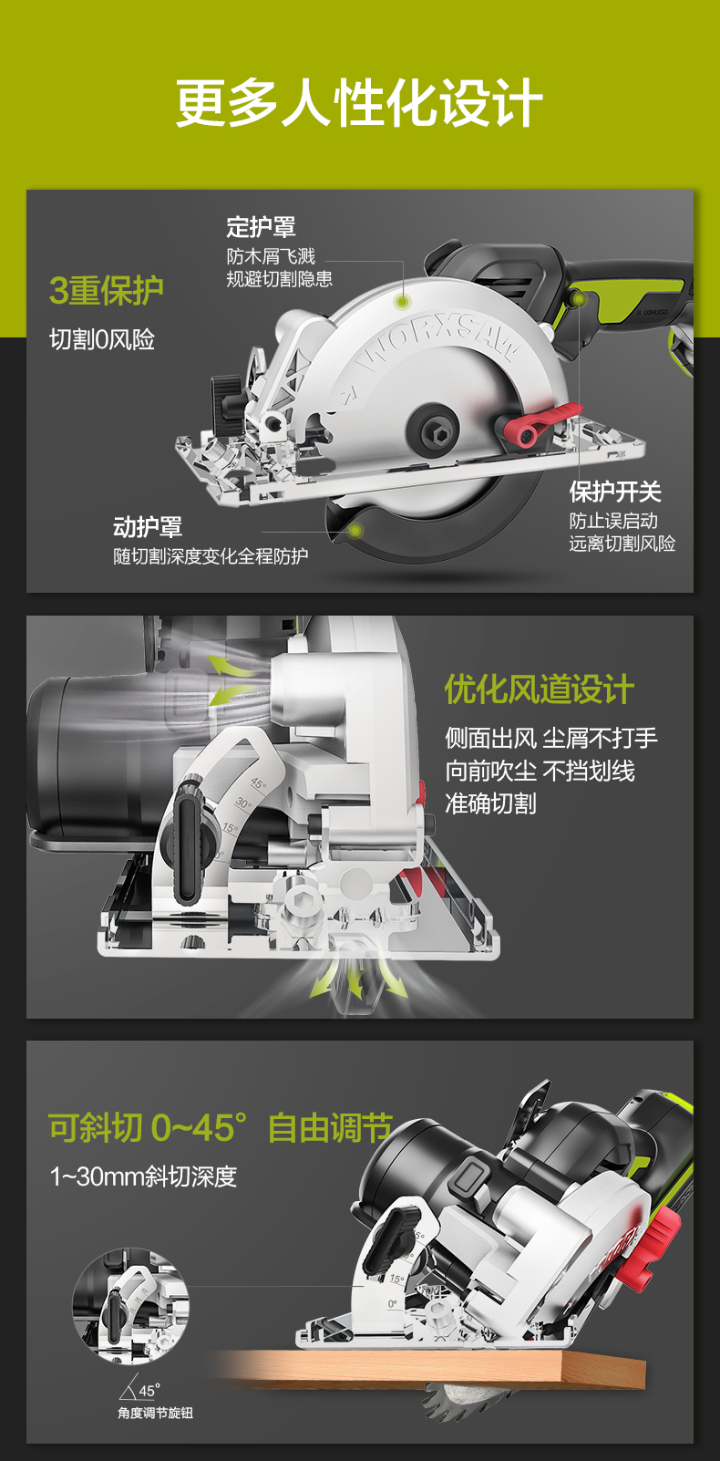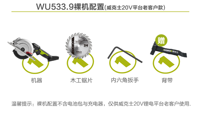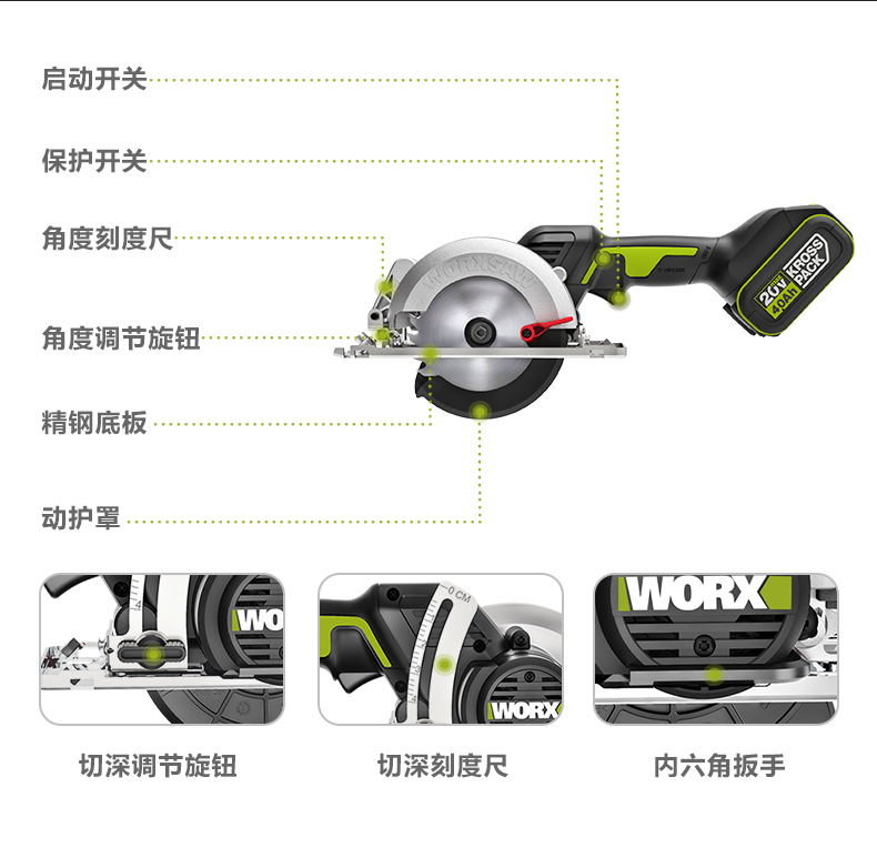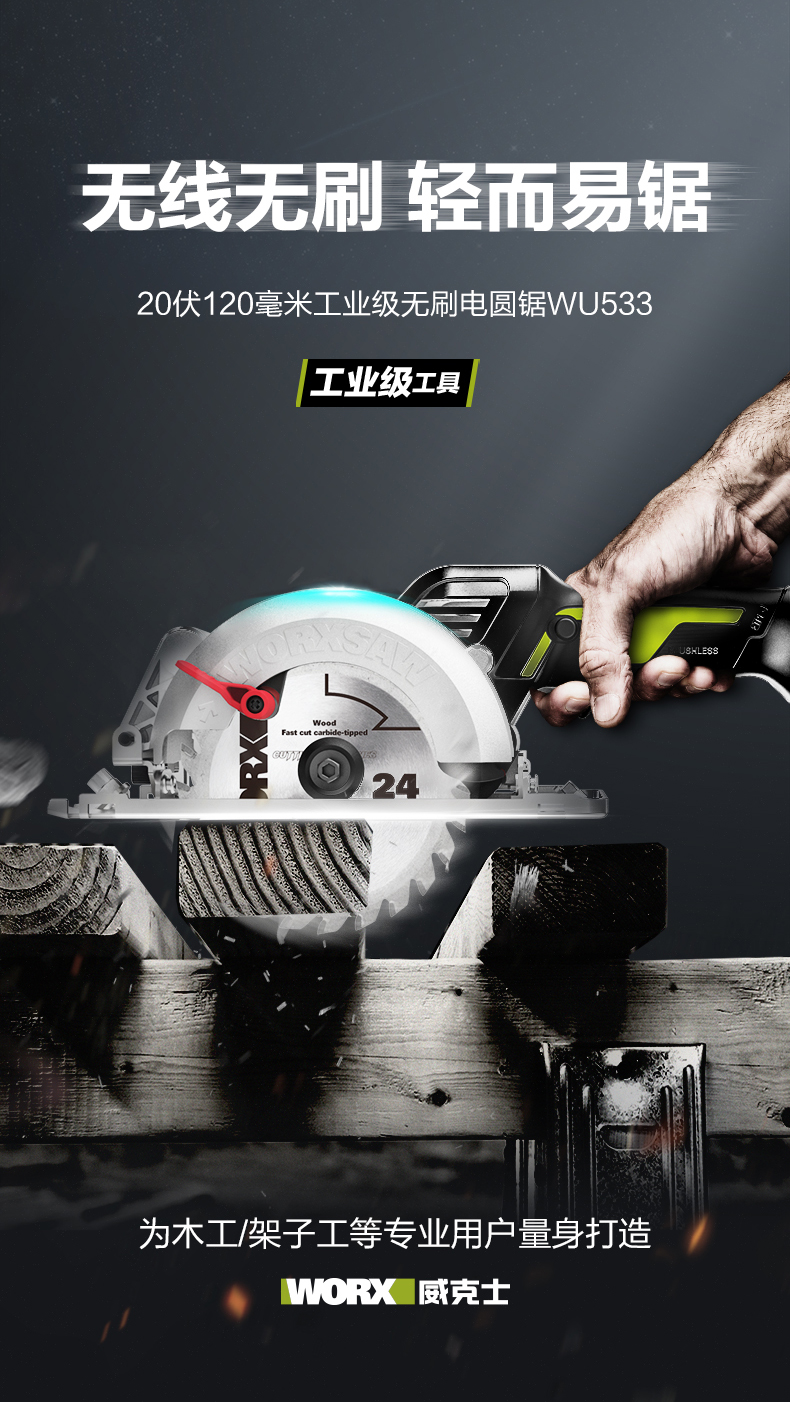 威克士无刷电锯WU533 多功能锂电电圆锯手提锯圆盘锯工业级切割锯
