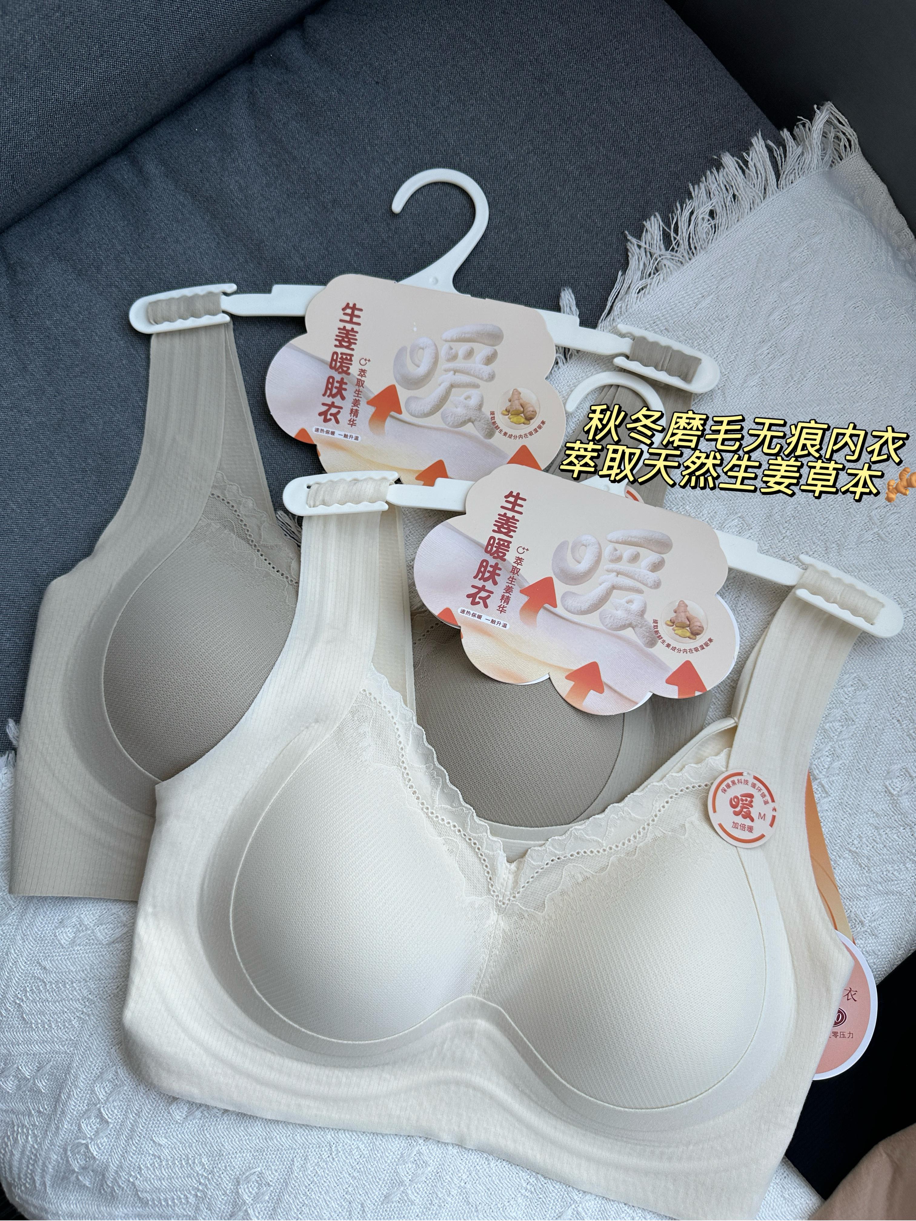 秋冬生姜绒感发热文胸内衣 萃取天然生姜草本 无钢圈 3D 软支撑 固定杯机洗不跑杯 保暖背心式内衣