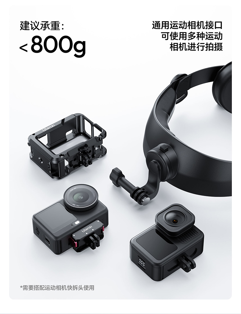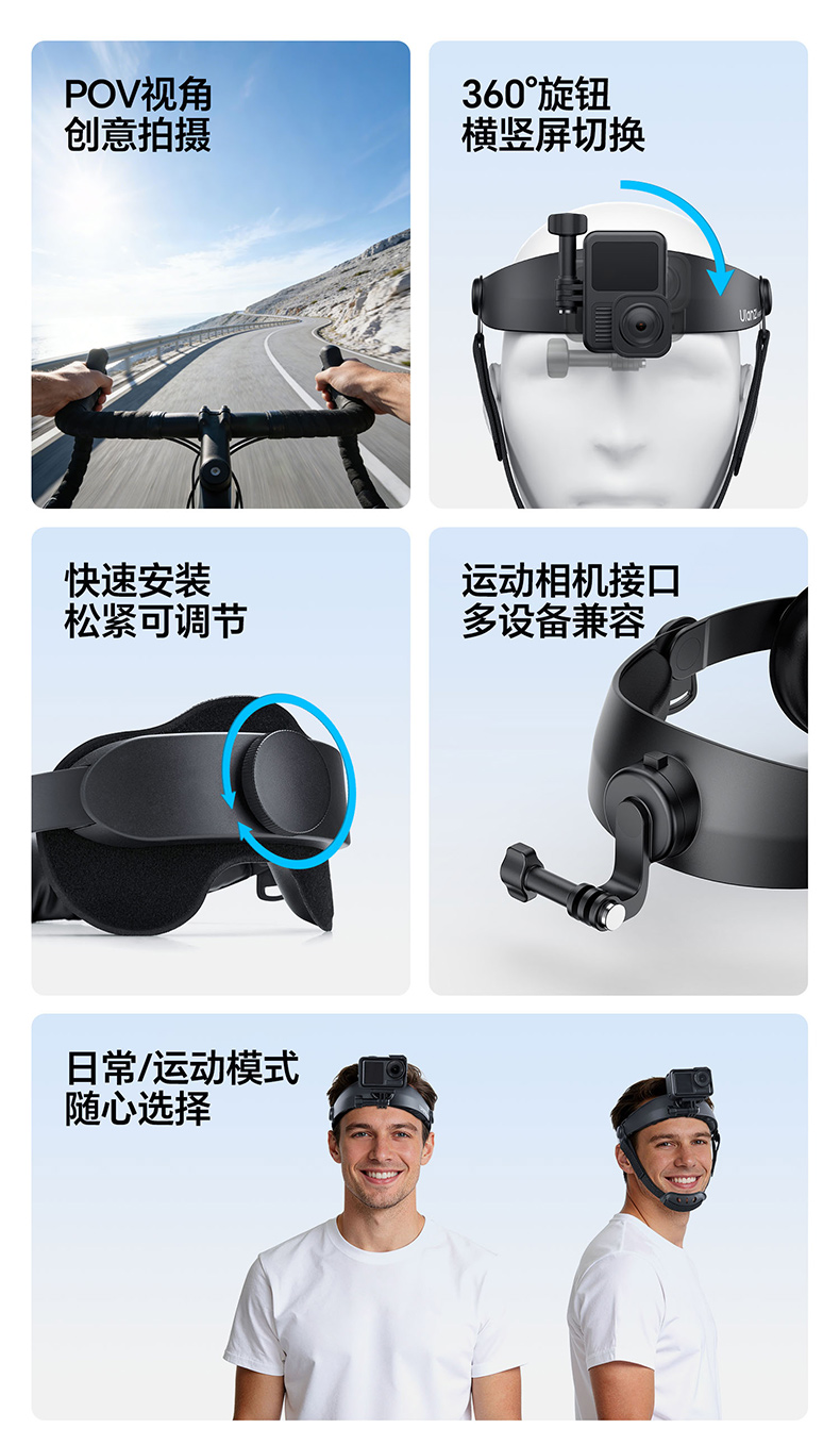 Ulanzi优篮子HERO头戴支架大疆Action6/5pro/4运动相机POV第一人称视角拍摄手机户外骑行gopro头带vlog支架