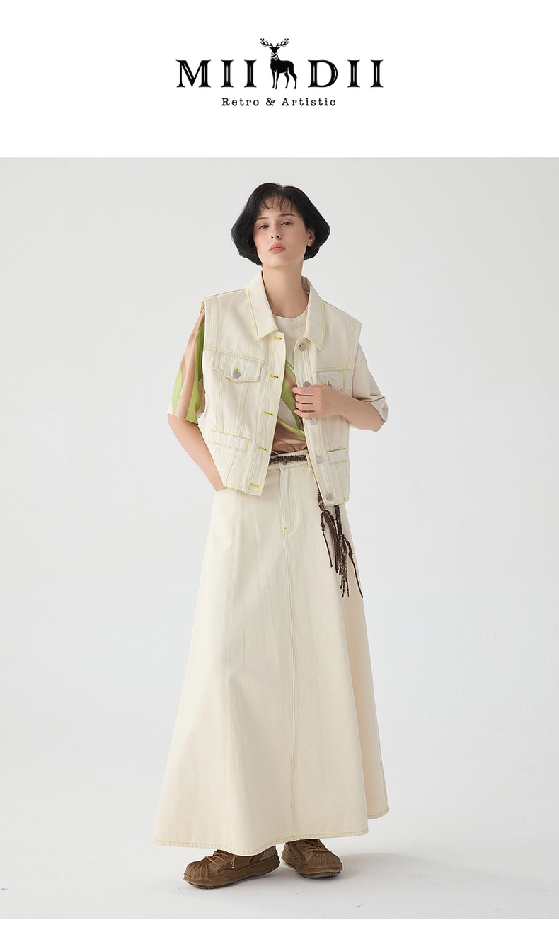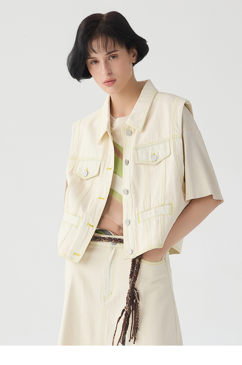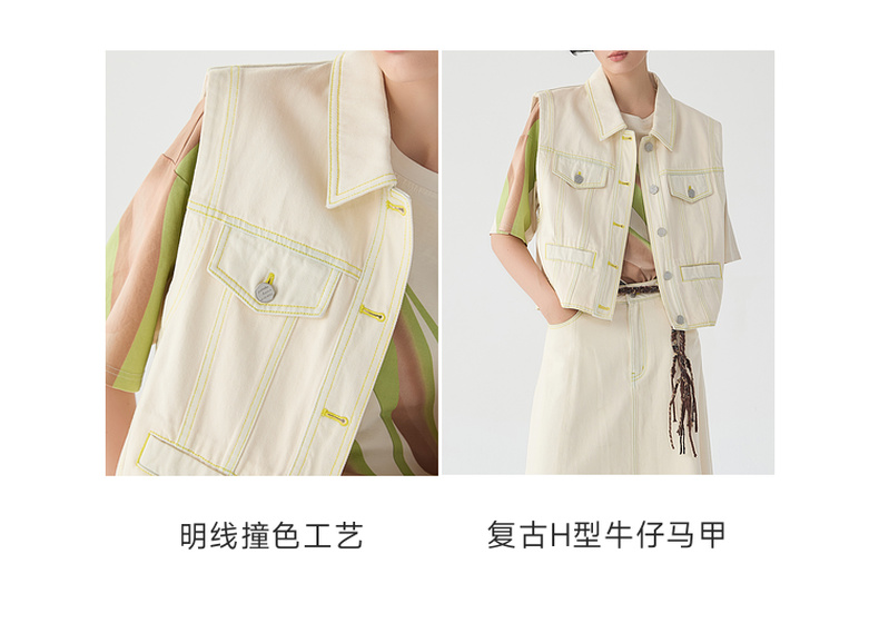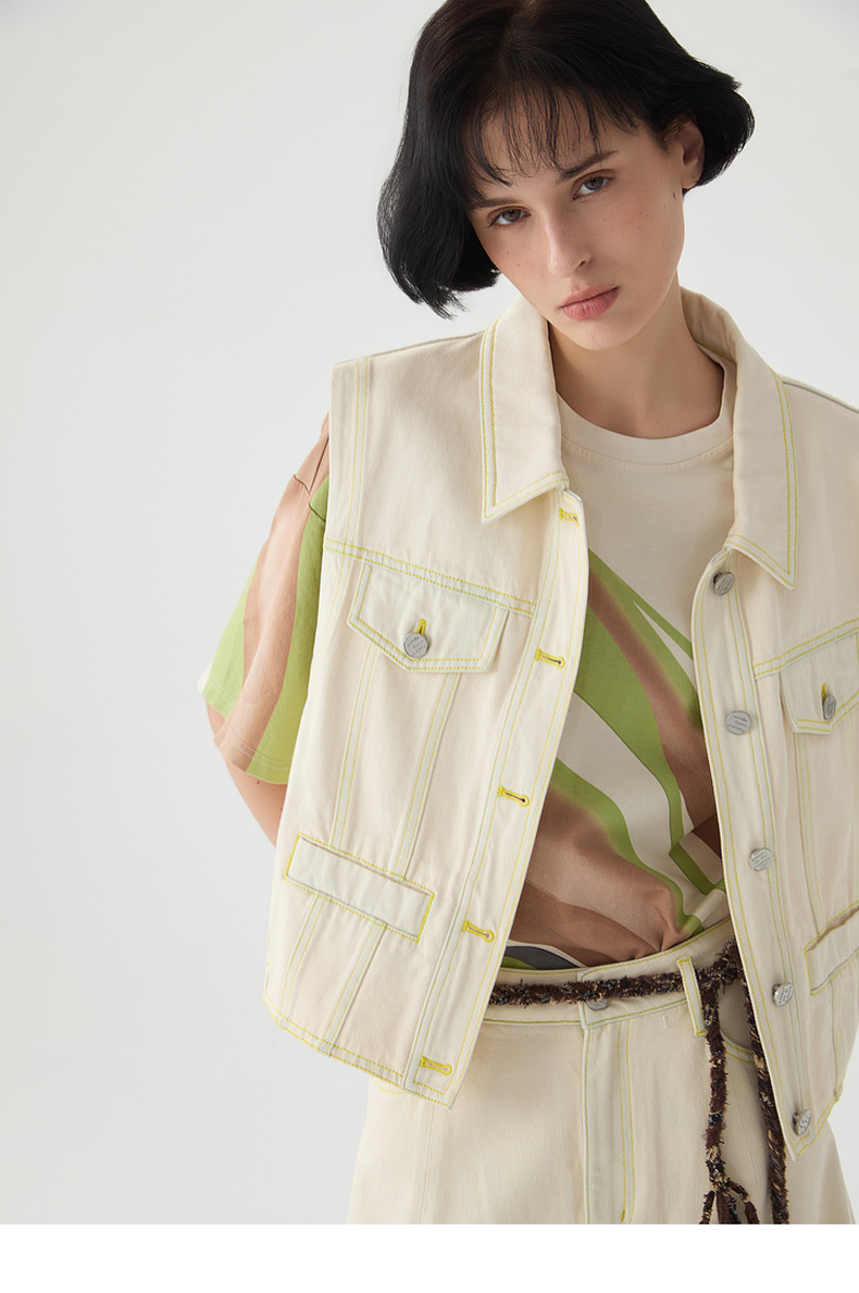 谜底牛仔马夹女2025春季新品复古简约翻领马甲外套无袖251MM0096