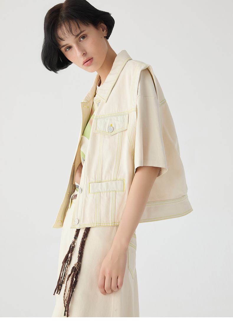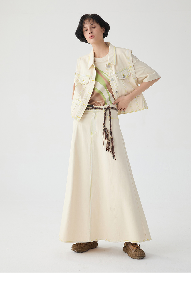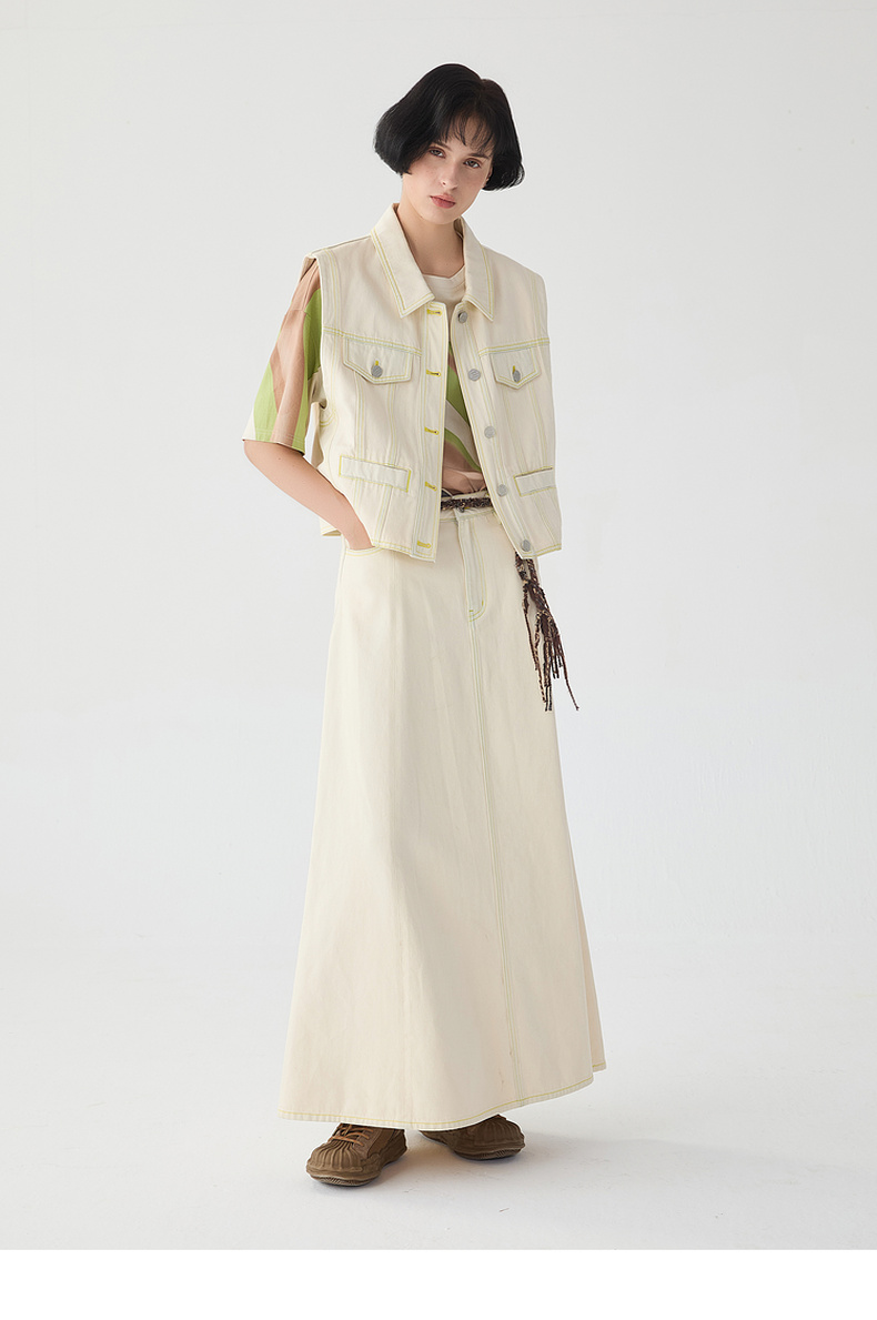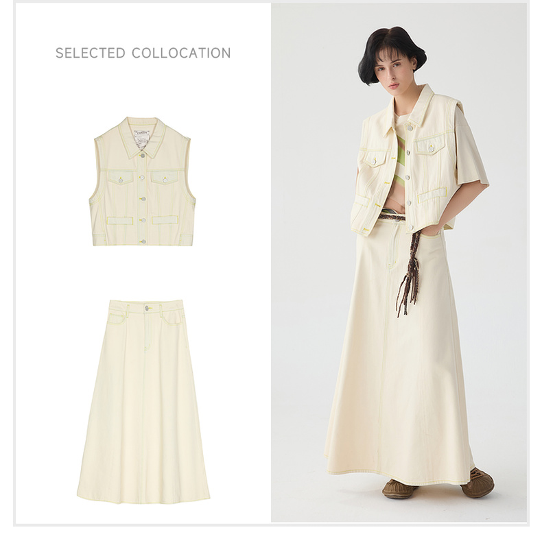 谜底牛仔马夹女2025春季新品复古简约翻领马甲外套无袖251MM0096