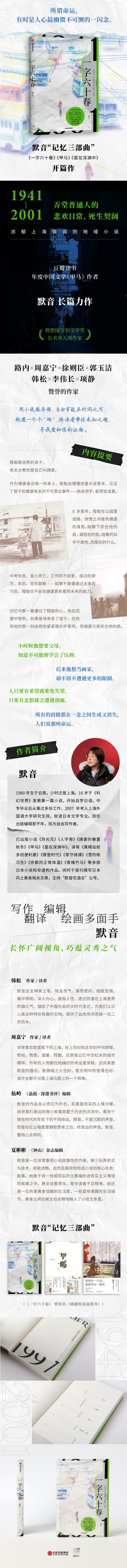 一字六十春 豆瓣读书年度中国文学《甲马》作者、理想国宝珀文学奖长名单入围作家 默音 长篇力作
