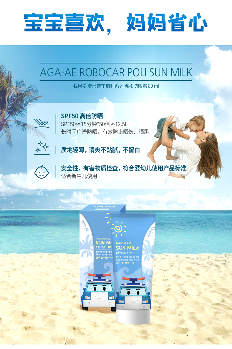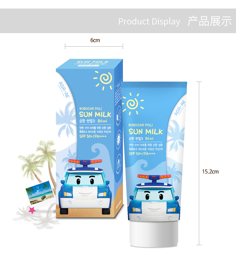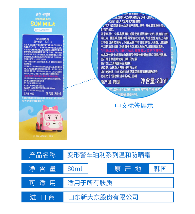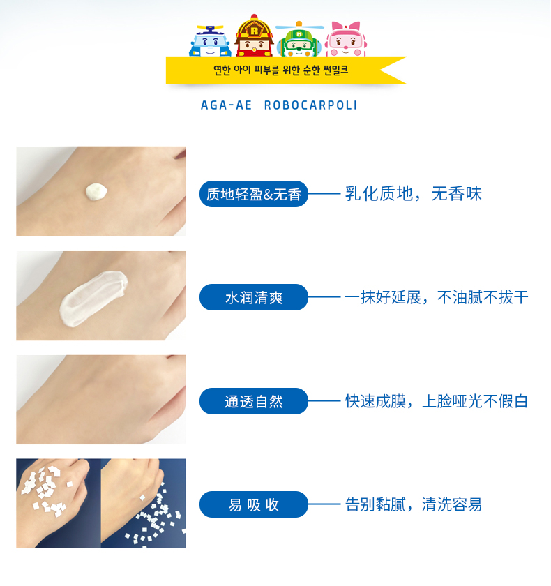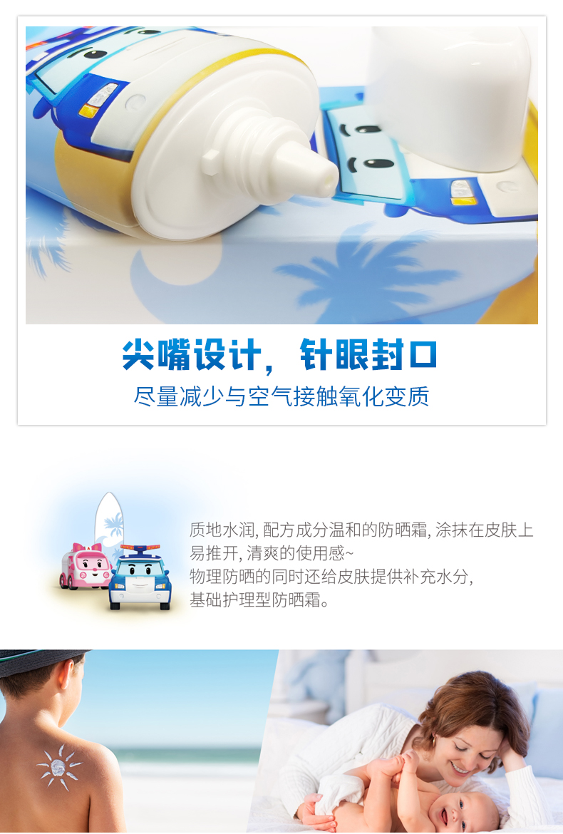 【中欧班列】韩国我珂爱保湿防晒霜 原装进口变形警车儿童防晒霜婴幼儿宝宝专用物理防晒霜 80ml/支WHBX