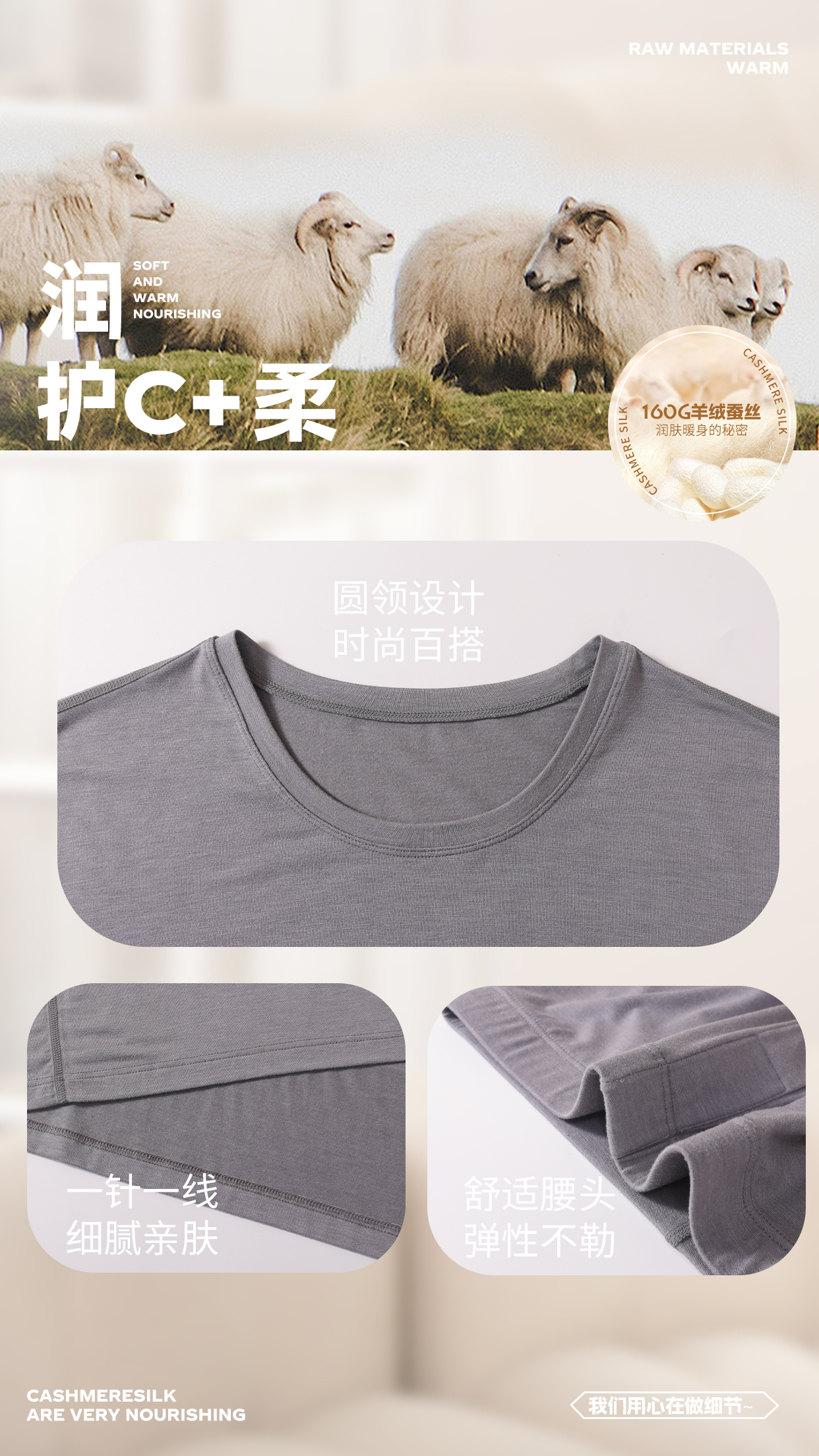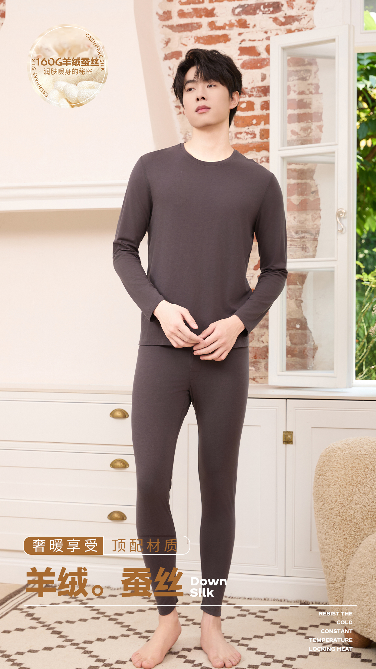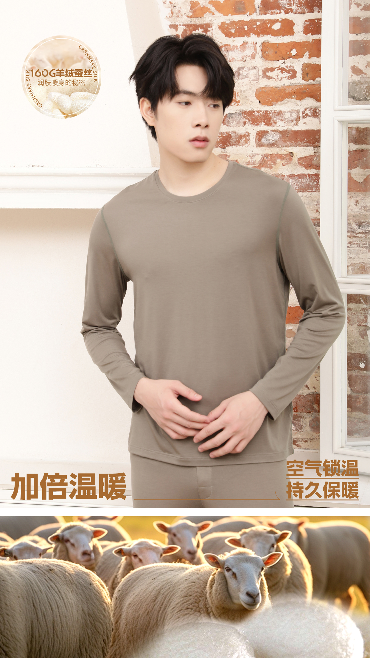 【保暖衣】男士轻薄蚕丝上衣秋冬薄款打底衣内搭秋衣【FL24606】