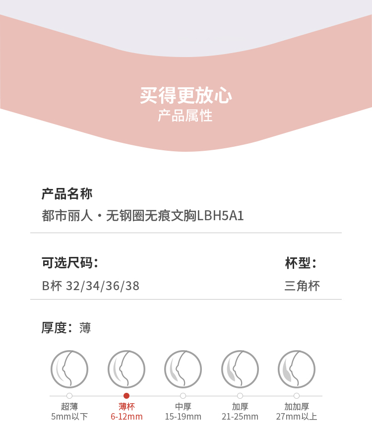 都市丽人无痕B杯无痕内衣薄泳布无钢圈常规文胸LBH5A1