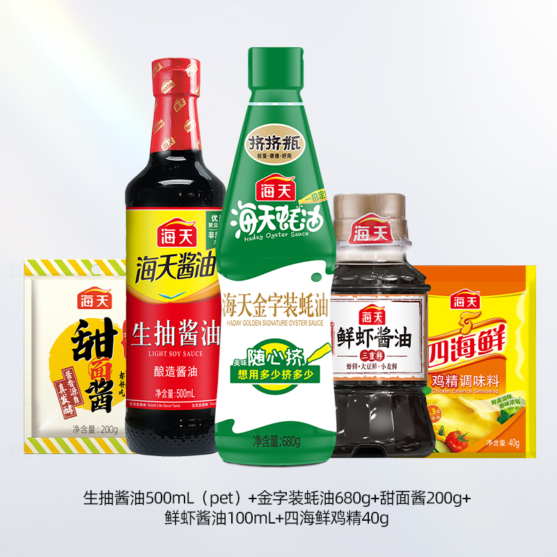 海天家庭实惠五件套生抽酱油提鲜鲜虾酱油三重鲜甜面酱拌面四海鲜鸡精增鲜提味