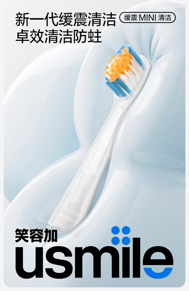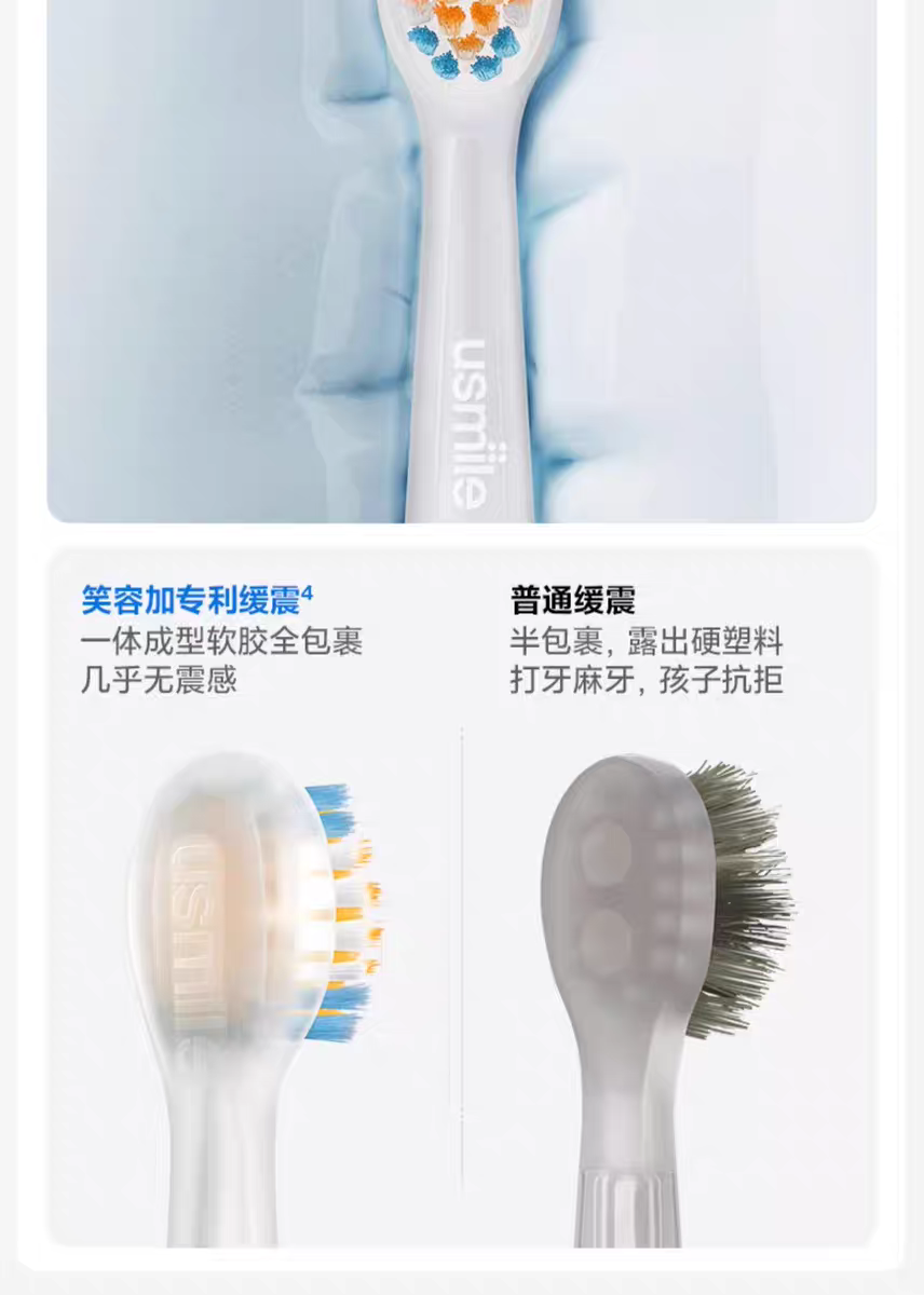 笑容加usmile儿童电动牙刷替换通用的MINI软毛全身软硅胶缓震清洁刷头Q4/Q10/Q20