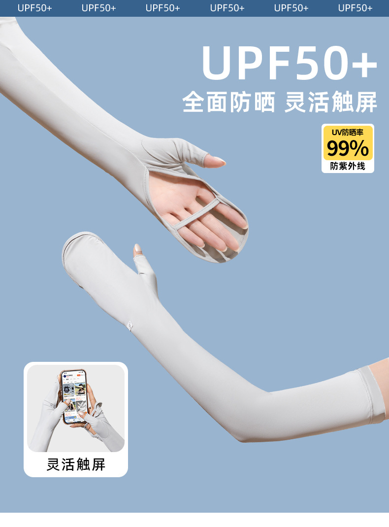 防晒手套冰丝袖套女士夏季防紫外线开车骑行加长护臂手袖宽松冰袖