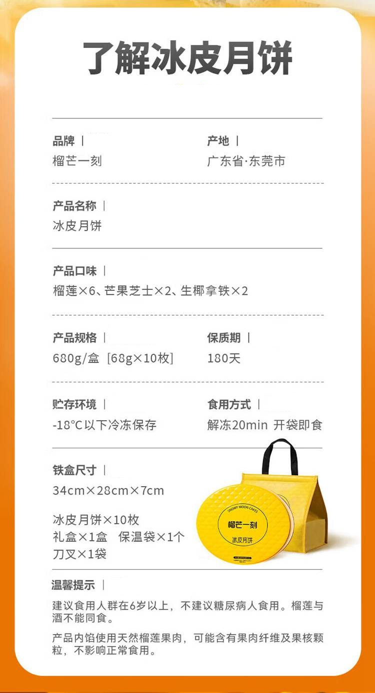 榴芒一刻 冰皮月饼多口味 680g 【福利品】