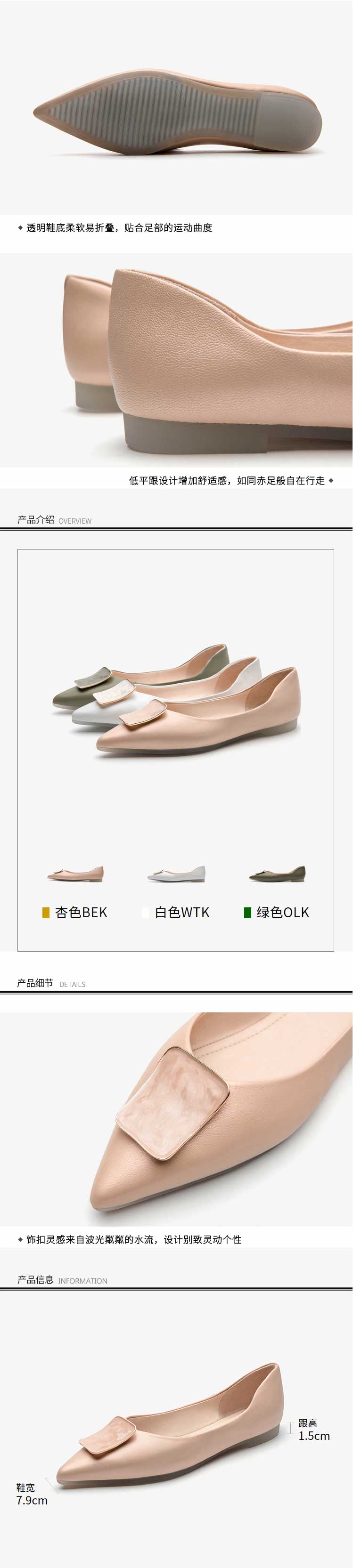 莱尔斯丹尖头浅口创意立体扣低跟船鞋套脚优雅单鞋2M12401