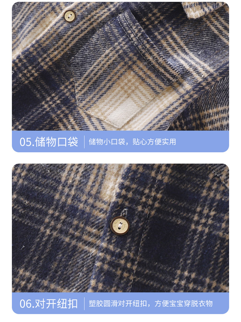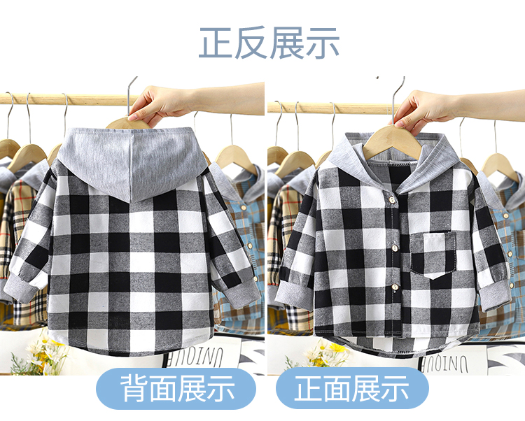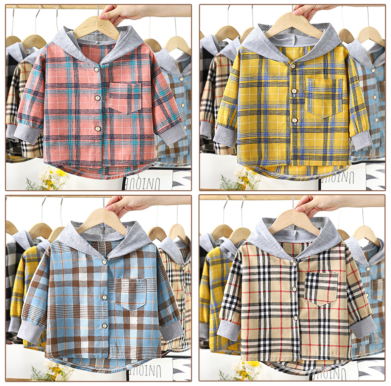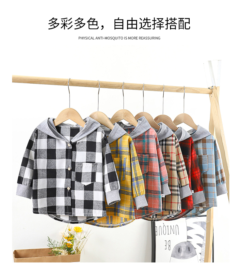 【49/任选2件】儿童长袖衬衫 宝宝新款韩版春秋娃娃衫女童格子翻领连帽衬衫外套潮