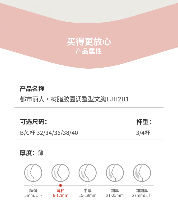 都市丽人水光杯舒软挺塑调整型文胸薄锁边树脂胶圈塑身文胸LJH2B1