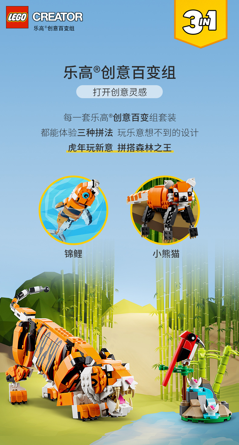 乐高创意百变系列31129 威武的老虎