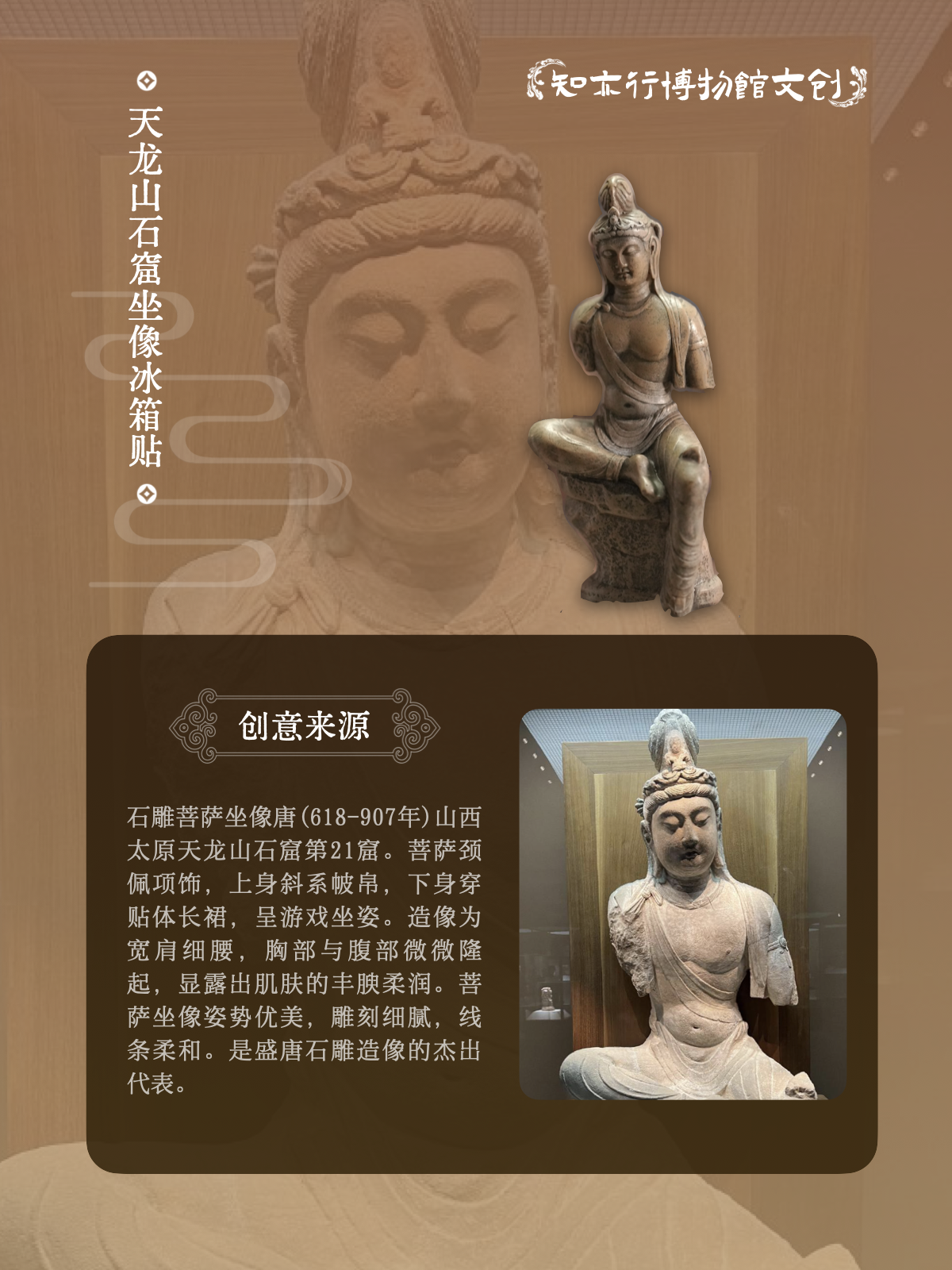 天龙山石窟21窟菩萨坐像冰箱贴唐代协侍立体文创创意礼品山西文创